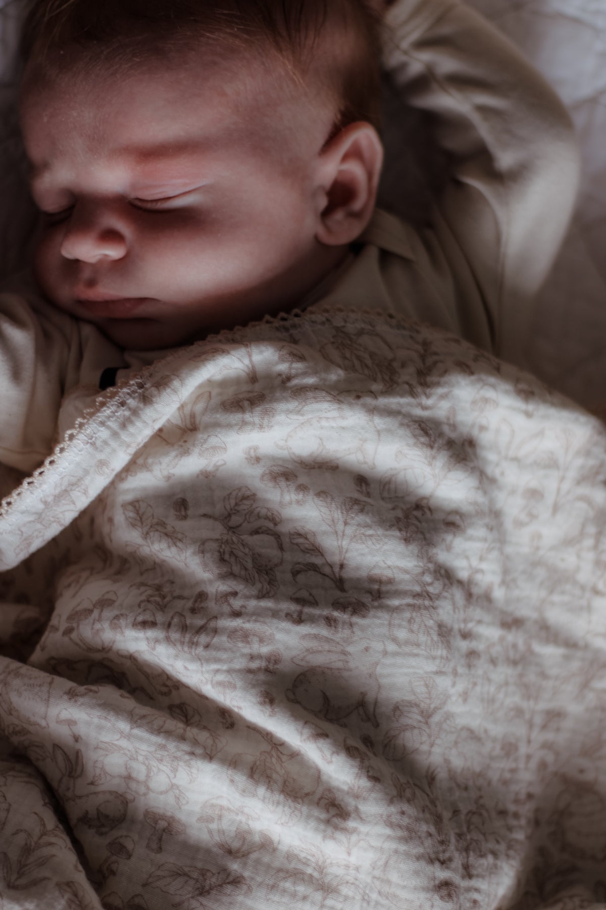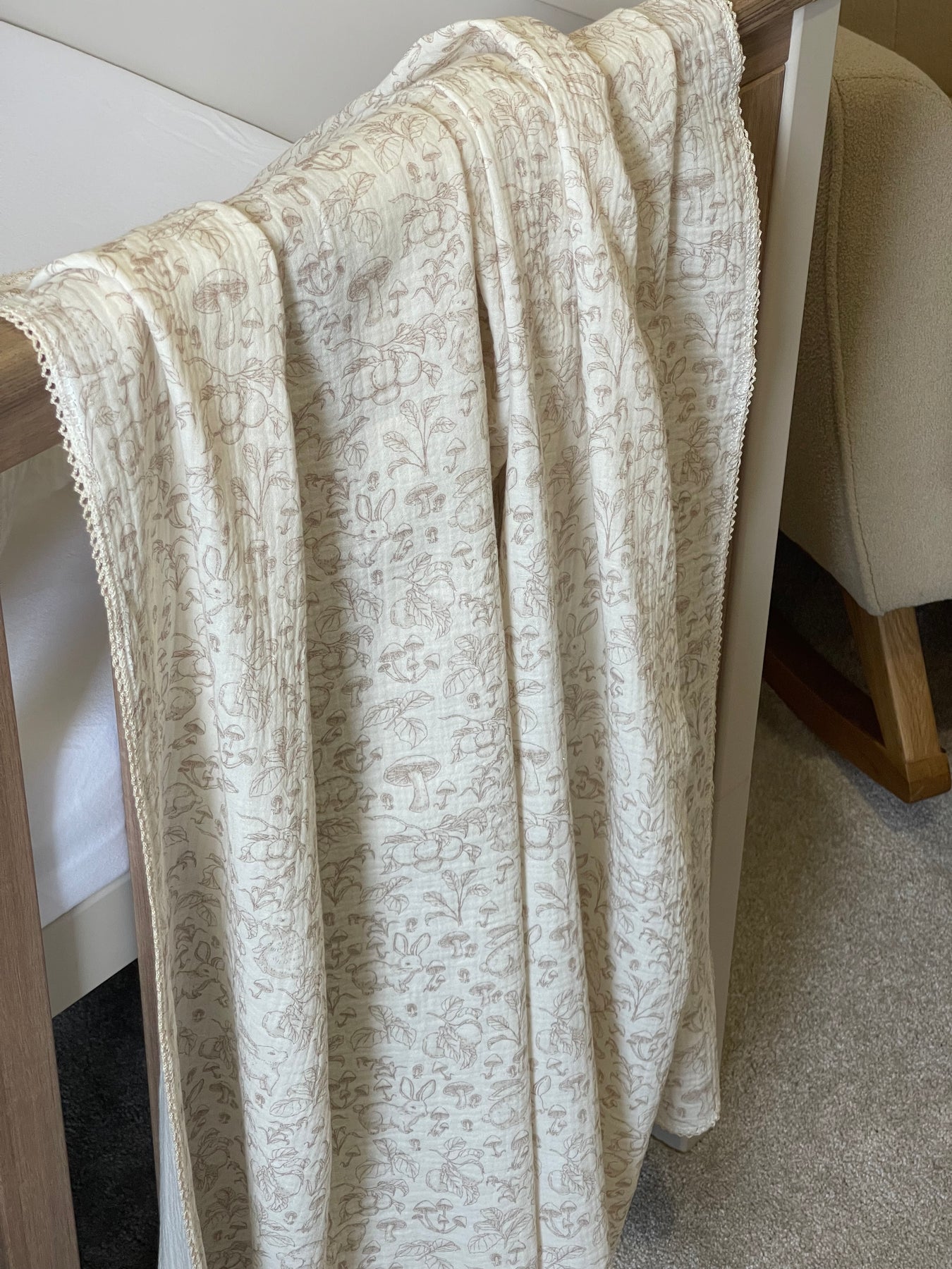 Experience the softness and beauty of our Mabel & Fox Baby Muslin Cotton Blanket in Woodland Bunnies. Made with light, breathable 2-ply cotton, this must-have blanket features a lovely print, perfect for keeping your little one cozy and stylish. It also makes a wonderful gift for any new parent.