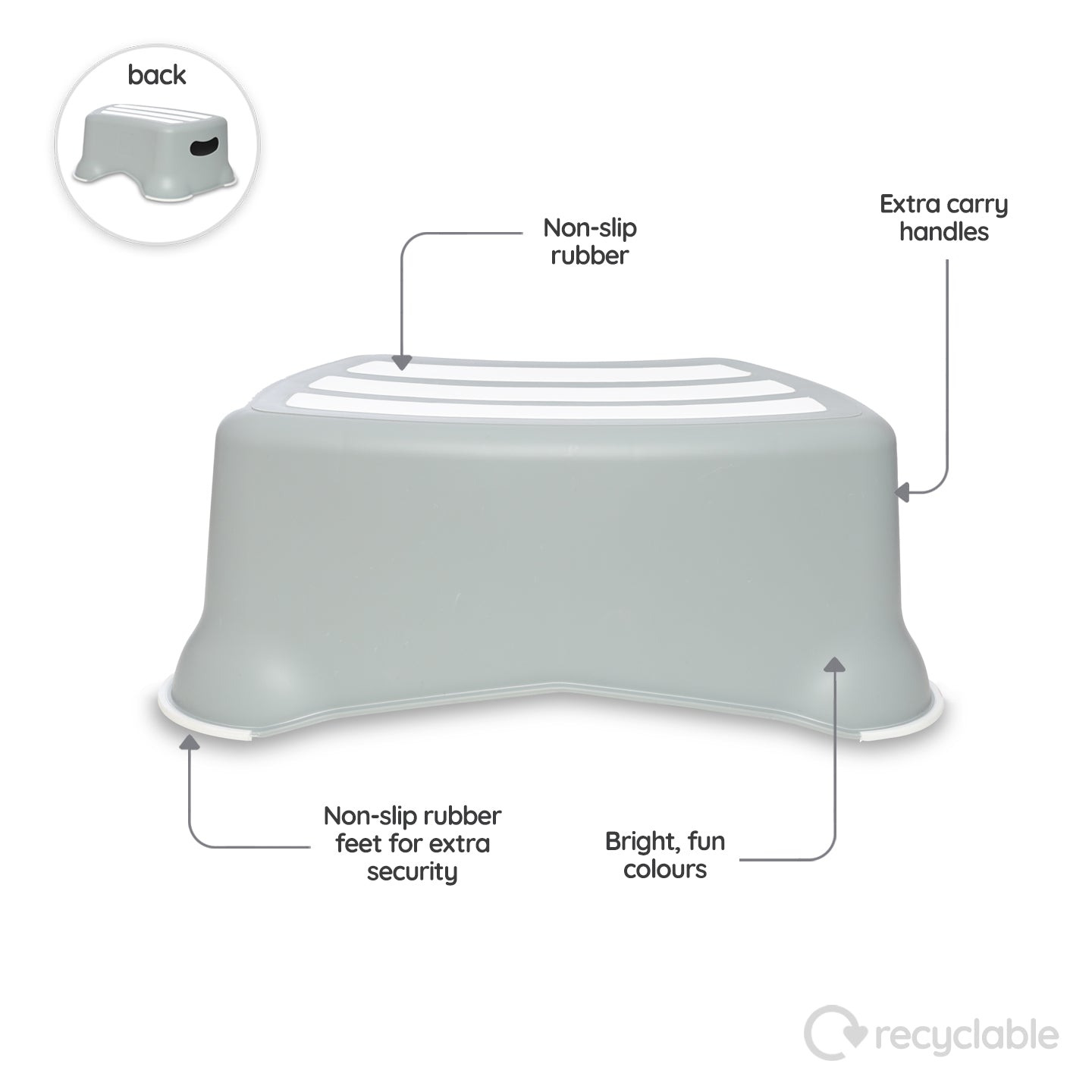 Non-slip rubber feet and a textured top surface keep things steady and secure, while the ergonomic height helps toddlers stand confidently or sit correctly on the toilet — encouraging better posture and helping to prevent constipation. Lightweight and easy to carry, it’s as practical in the bathroom as it is in the kitchen or bedroom, offering support wherever your child needs it.