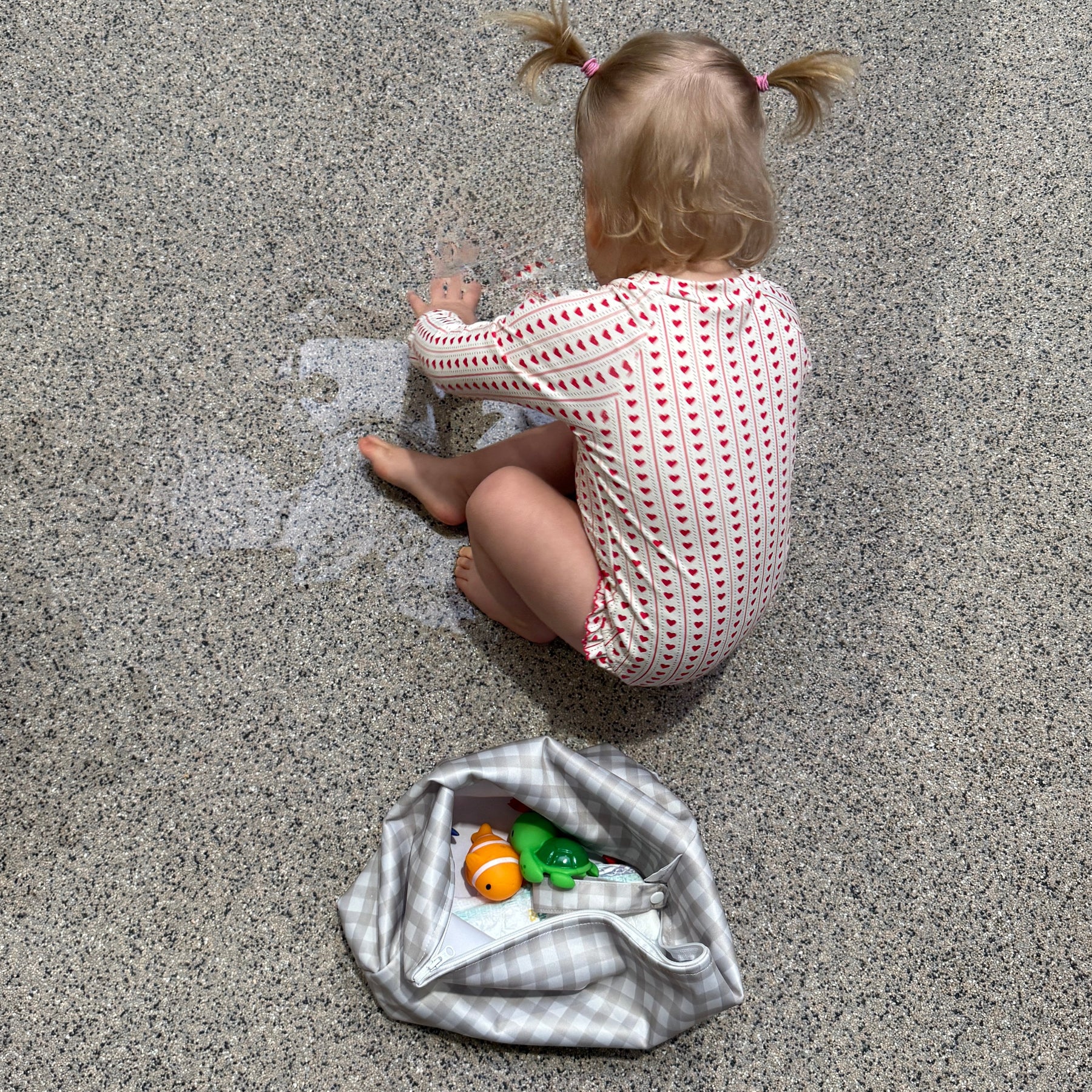 Made with both parents and little ones in mind, this lightweight wet bag features our stylish beige gingham print that looks great alongside your everyday baby essentials. The additional loop handle and popper fastenings allow you to attach the bag to a pram, changing bag or hook, keeping it within reach when you’re out and about.