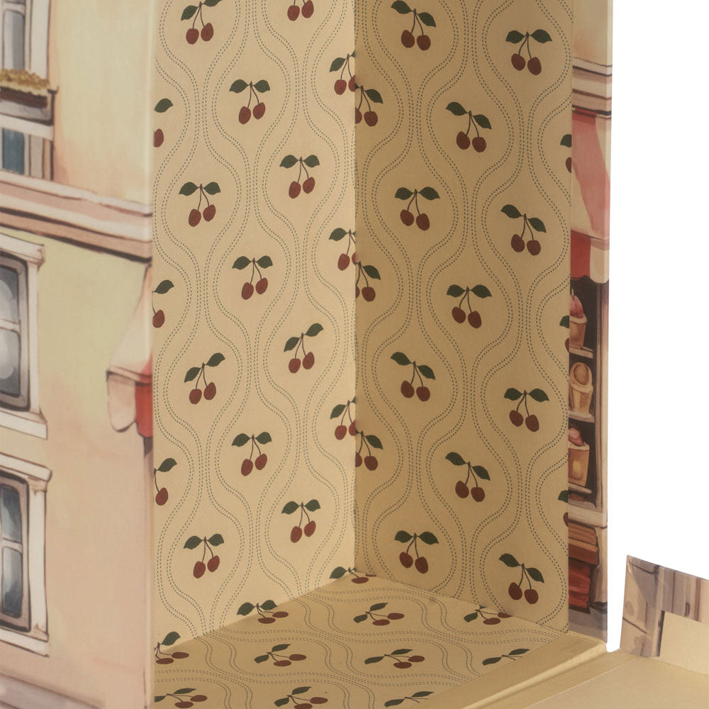 Transform playtime with these delightful stacking boutique boxes inspired by vintage Parisian charm. The compact suitcase nestles inside the larger box, while reinforced metal handles make them perfect for little hands to carry from room to room. Crafted from sturdy cardboard and metal for imaginative shop-and-play adventures.