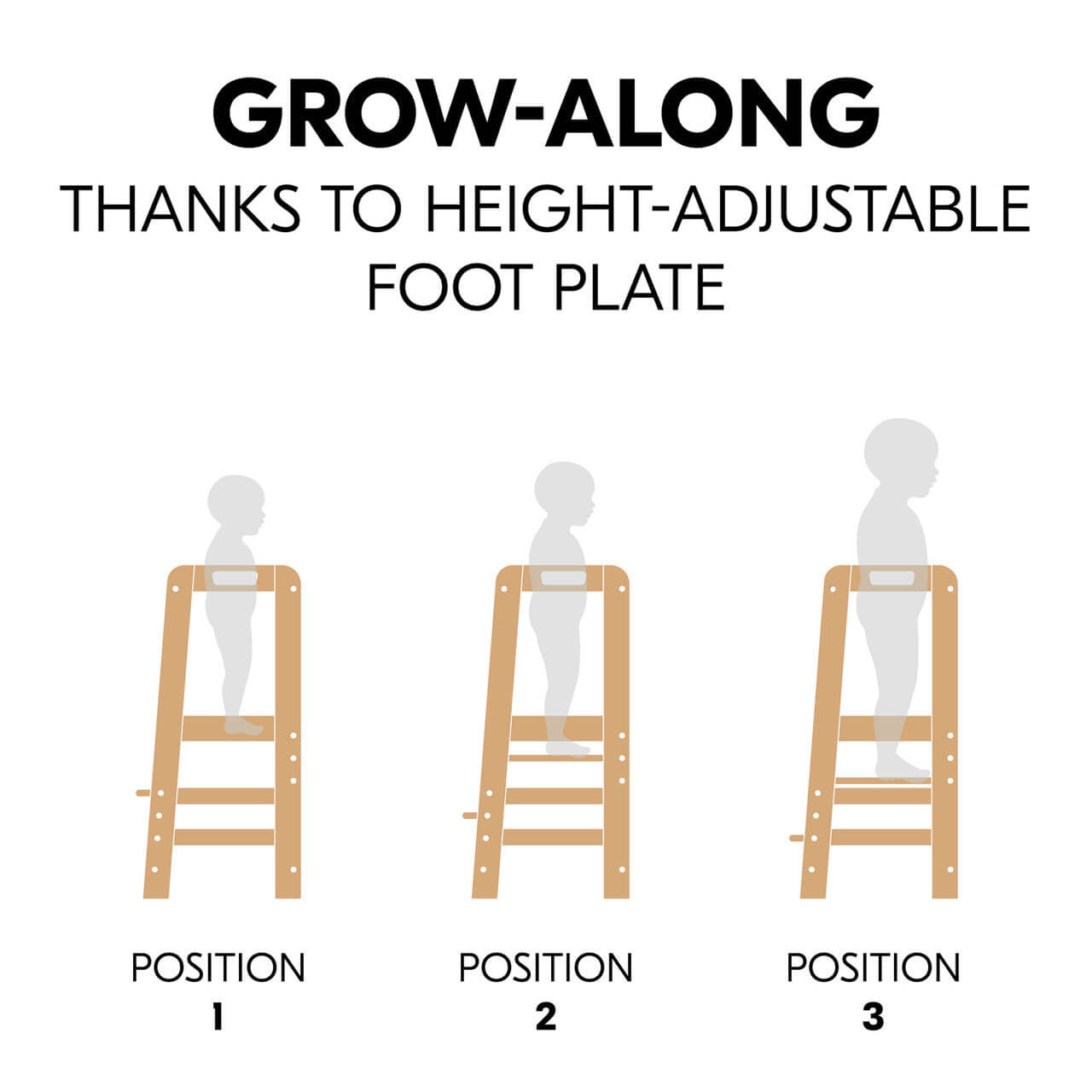 This durable and sturdy Learn N Explore tower can handle up to 40 kg of weight, providing stability and lasting use. The adjustable footplate, with its 3 positions, allows the tower to grow with your child, making it a practical and long-term solution for parents and caregivers. Putting the furniture together is a breeze, and it's easy to maintain, making it even more convenient.