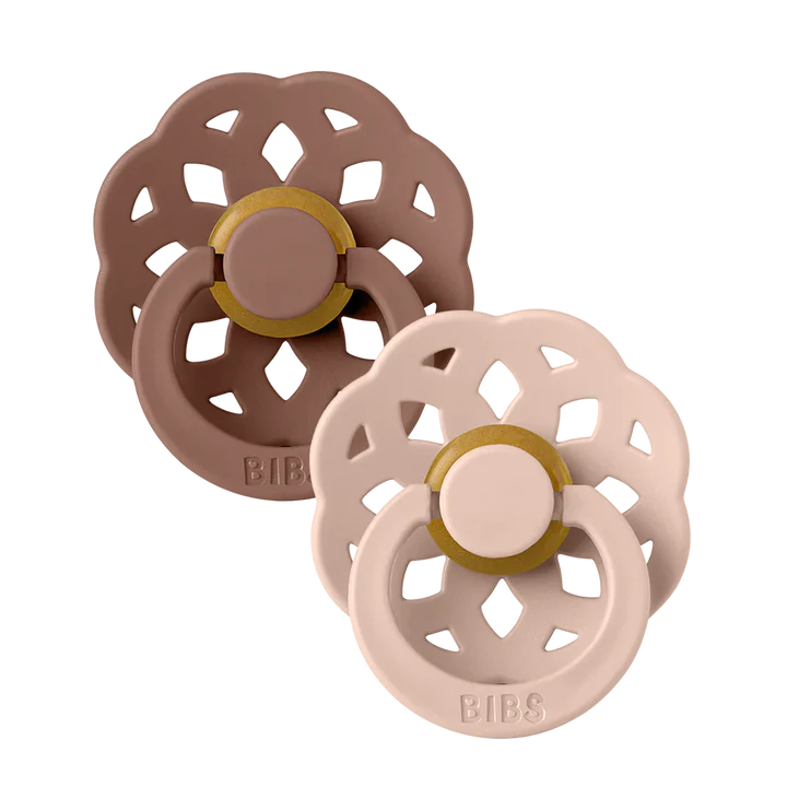 Bibs boheme pacifier is inspired by the modern bohemian style with its natural elements and organic silhouette. Bibs pacifiers are designed to help calm and soothe your baby, lower stress levels and provide a sense of security when they're upset. The round lightweight shield faces away from the sensitive and delicate skin around the baby's mouth to ensure minimum contact with the baby's nose and mouth, which means less chance of moisture build-up from saliva that can cause rashes and sore spots.