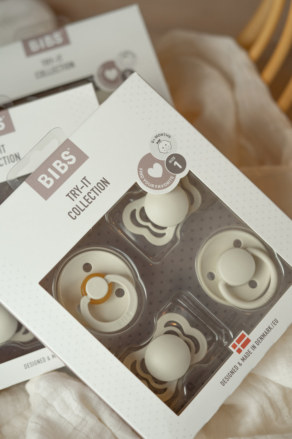 When it comes to pacifiers’ nipples no size or shape is right or wrong because all babies are different. Babies have different preferences, different sucking techniques, and different mouth anatomy. Therefore, Bibs Try-It collection if the perfect option for any new born.