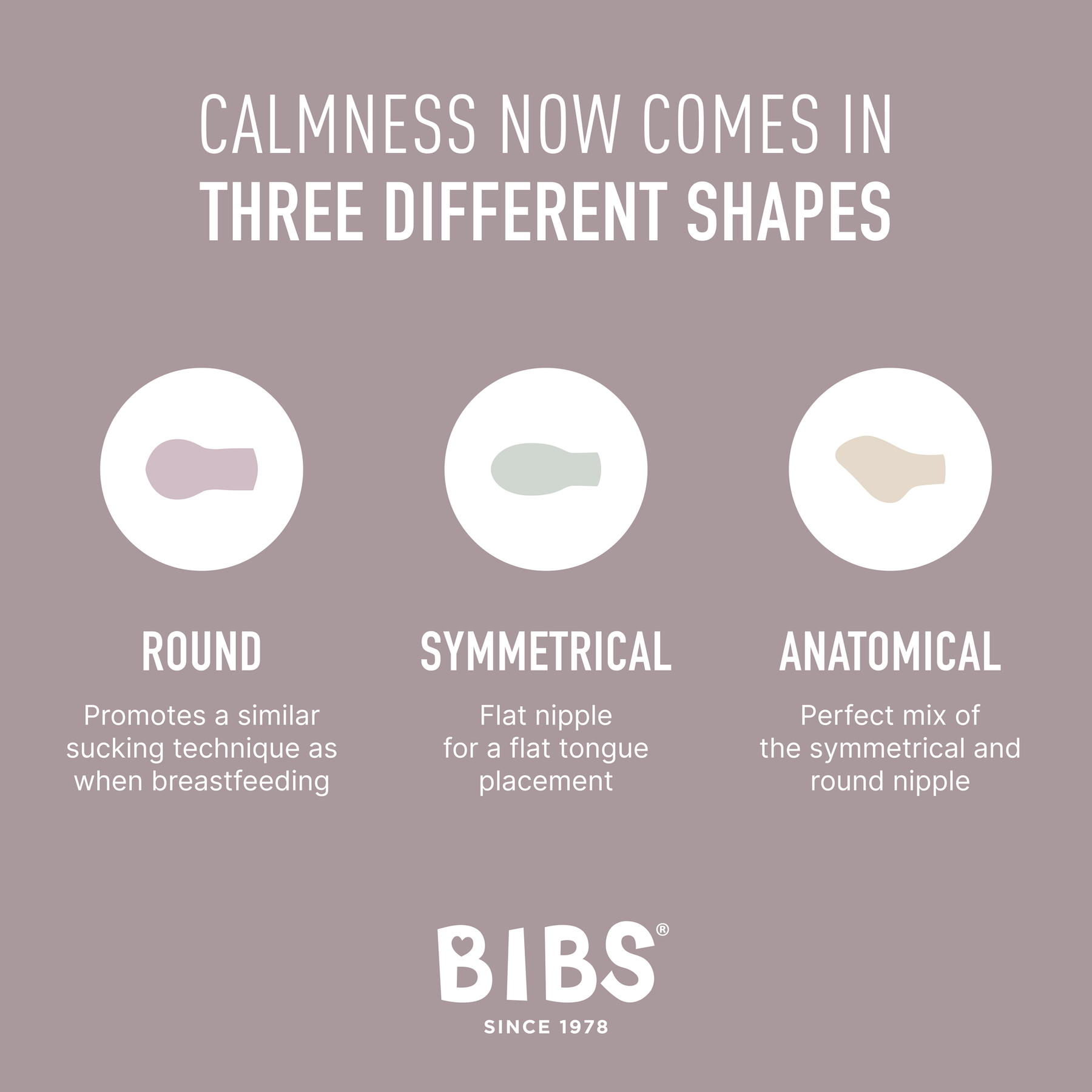 Bibs pacifiers are designed to help calm and soothe your baby, lower stress levels and provide a sense of security when they're upset. Each nipple shape has been designed to help soothe your baby. The round nipple promotes a similar sucking technique as when breastfeeding, the symmetrical nipple is for a flat tongue placement and the anatomical nipple design is the perfect mix of symmetrical and round nipple.This set includes the following pacifiers, each in size one and the colour ivory: