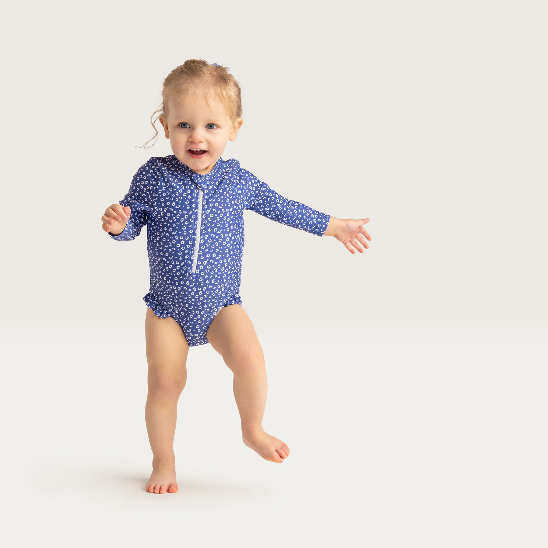 Get your little ones ready for a day of fun in the sun with our Swim Essentials Swimsuit in a playful blue leopard print! Designed for beach or pool days, this cute rashguard comes in multiple sizes for kids. Keep them protected and stylish all summer long.
