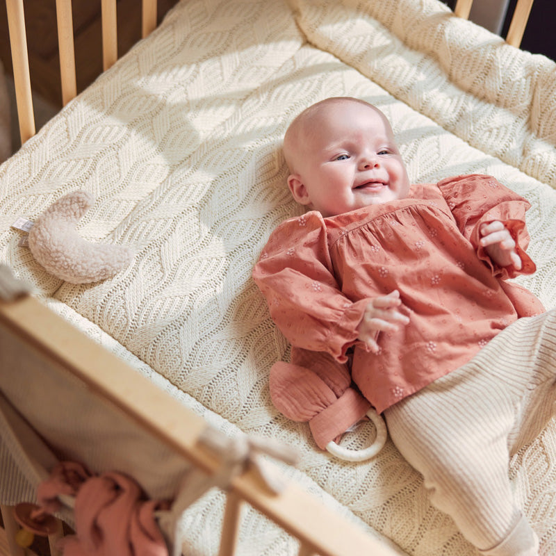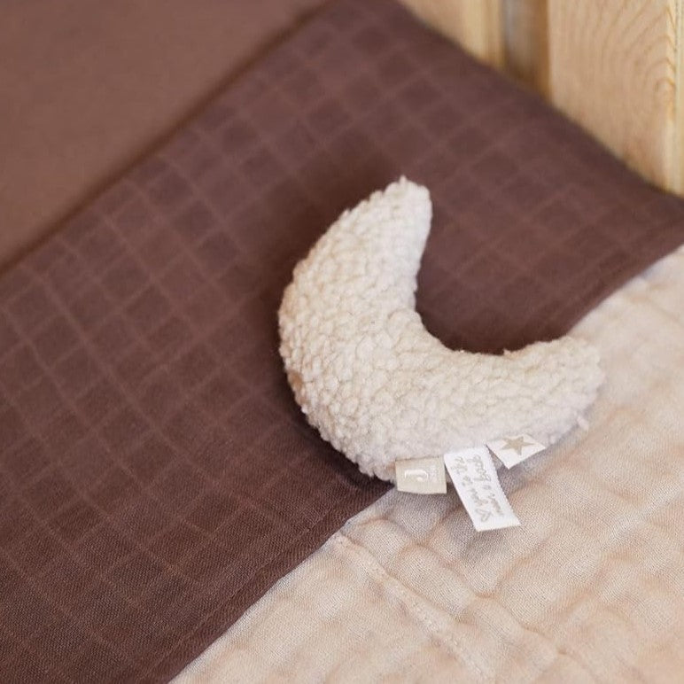 Jollein's Rattle Moon is perfect for little ones eager to hone their skills! Between its challenging rattle and soft bell, it's a great way to teach how to hold and move. Plus, this moon buddy is extra plush and fun for playtime!
