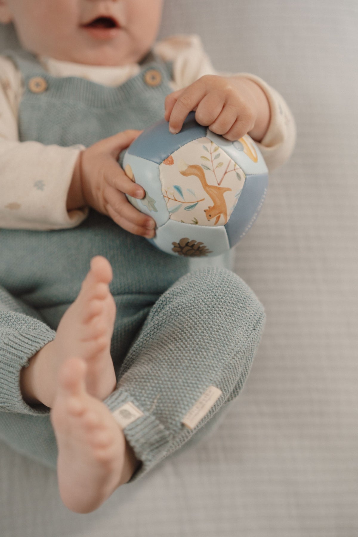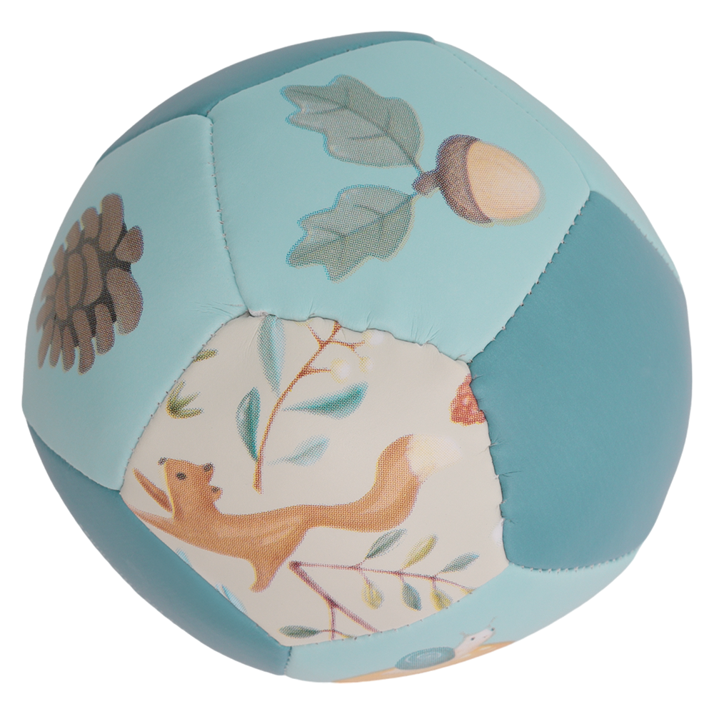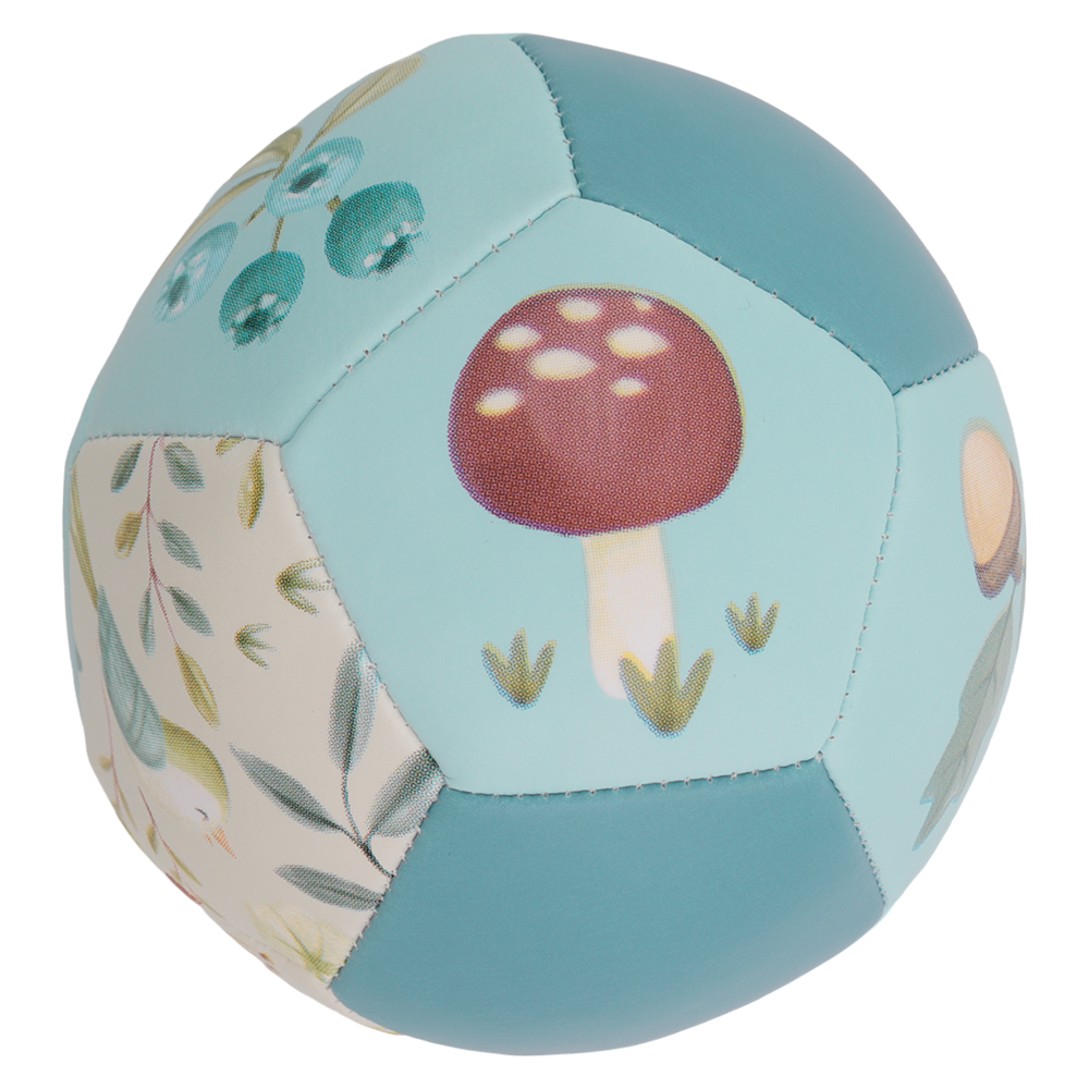 This Little Dutch soft ball is especially meant for the youngest. It is made of a soft and easy-to-clean PVC material. This ball measures approx. 10 cm in diameter, making it perfect for little hands to grab and roll. It is made in the colourful Forest Friends theme, has a hangtag, and is packaged in a full-colour display.