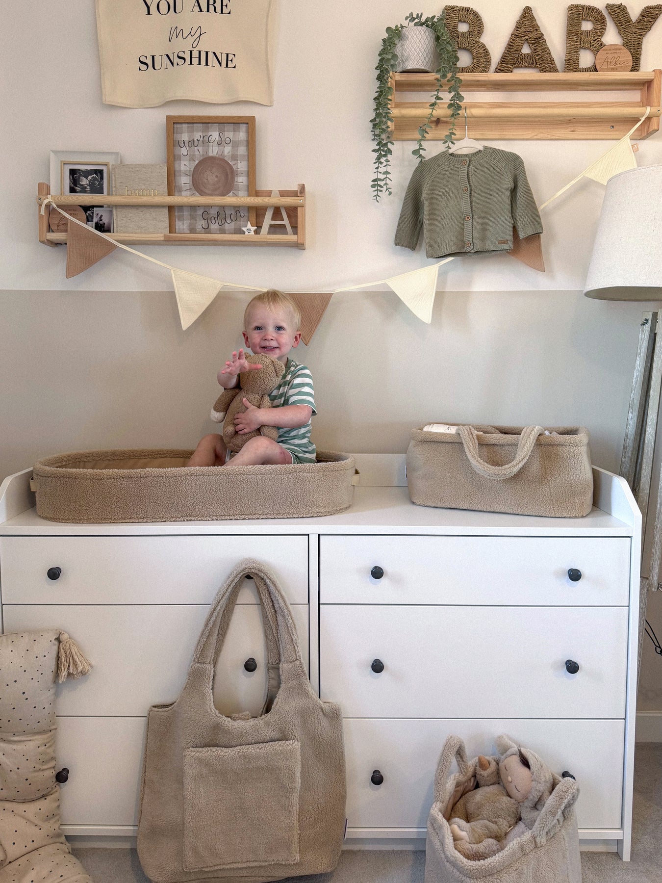 The storage basket is part of our Mabel & Fox Comfort Collection, which includes a matching nappy caddy, changing basket and a range of changing bags.