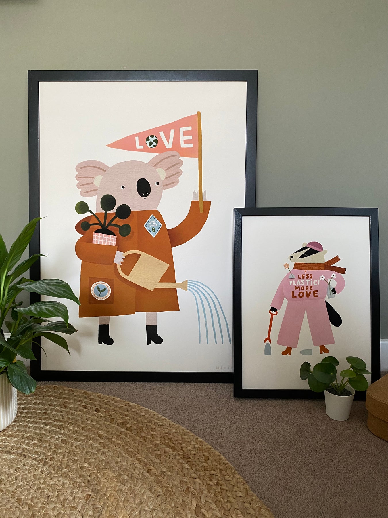 Let your little one be inspired to head outside and care for our planet with this charming Minibeau koala. Aniek Bartels, a Dutch illustrator who draws inspiration from nature and her commitment to living consciously, crafted this art print to not only look great but to raise awareness and challenge kids to take action.
