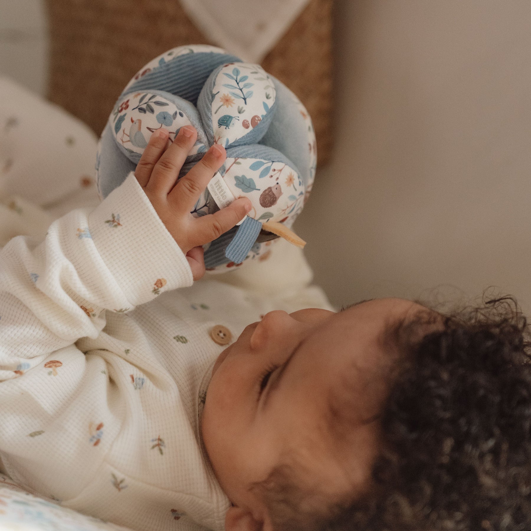 Reach and go for it! This Little Dutch‚ gripping ball with‚ its interesting shape makes for a great‚ challenge for your little one. There are‚ many spots to grab and explore with‚ different textures and patterns. It¢š¬s easy to‚ pick up for little hands and when it‚ moves the joyful sound of the bell rattle‚ will cheer your baby on. On the sweet‚ decor of Forest Friends, the easy-to-grab‚ knots and various labels will stimulate the‚ senses, develop grip and keep your baby‚ engaged in the playpen.