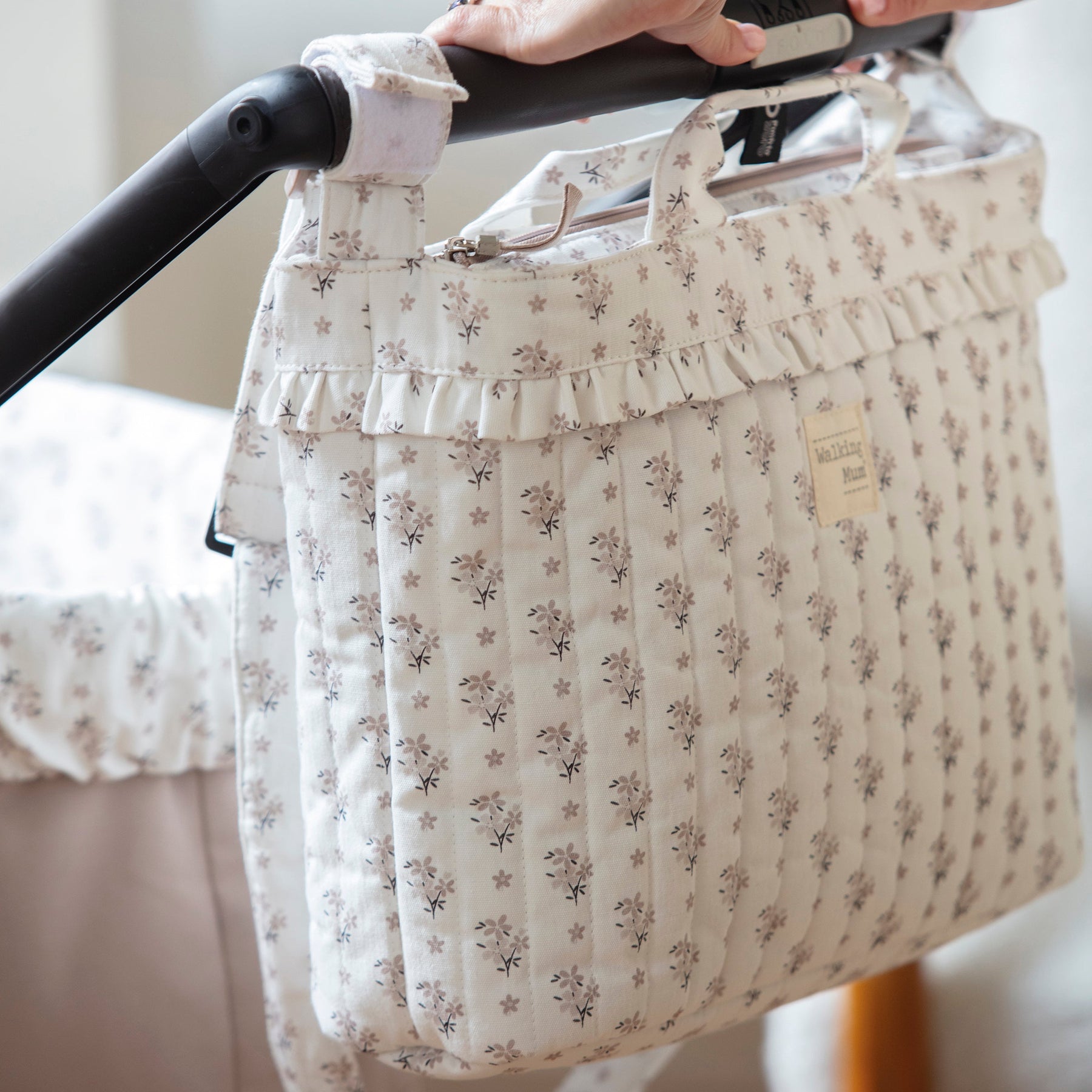 Designed for modern parents, it features a lightweight cotton construction with waterproof treatment, making cleanup effortless. The thoughtfully organised interior includes a thermal pocket for bottles, a waterproof compartment for wet items, and multiple storage pockets to keep essentials within reach. Universal stroller attachment clips work with any pushchair model, while the long shoulder strap and hand handles offer flexible carrying options. Includes a built-in changing mat for on-the-go convenience.