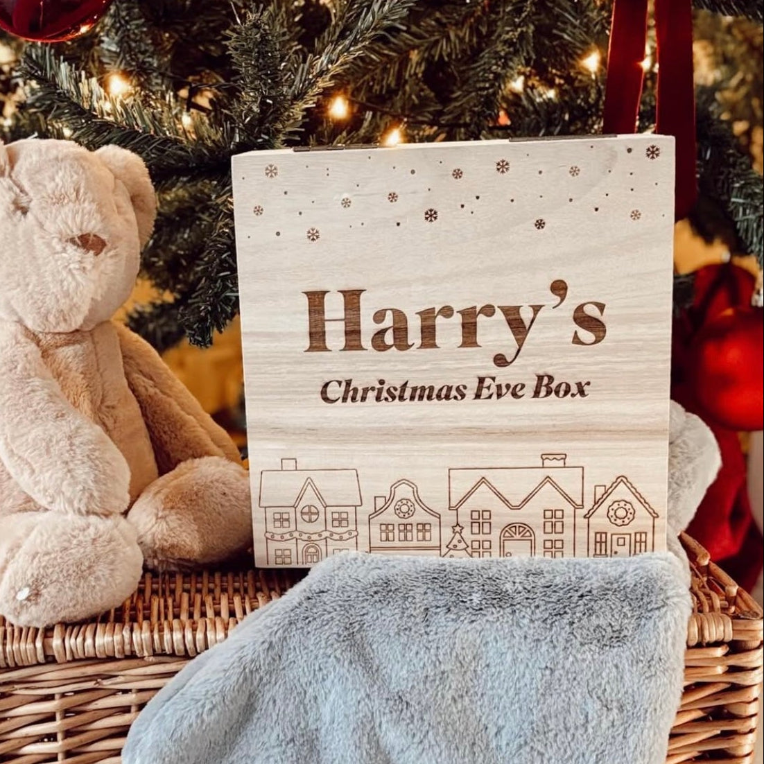 Delight in the magic of Christmas with this beautiful high-quality Mabel & Fox wooden box, personalised with their name for a truly unique keepsake. Perfect for filling with small gifts, this charming Christmas Eve box features an enchanting Christmas village design to spark excitement for the big day ahead.