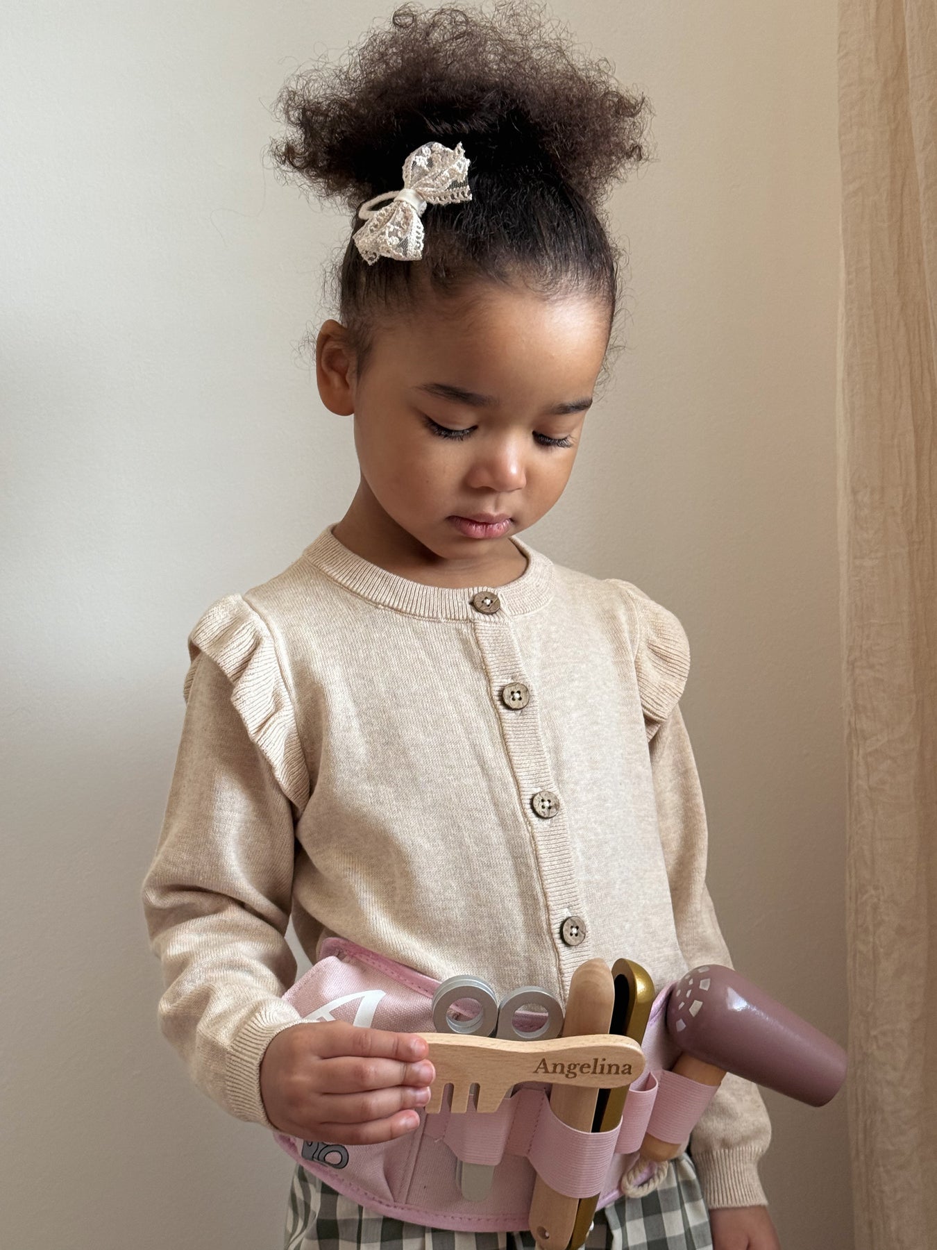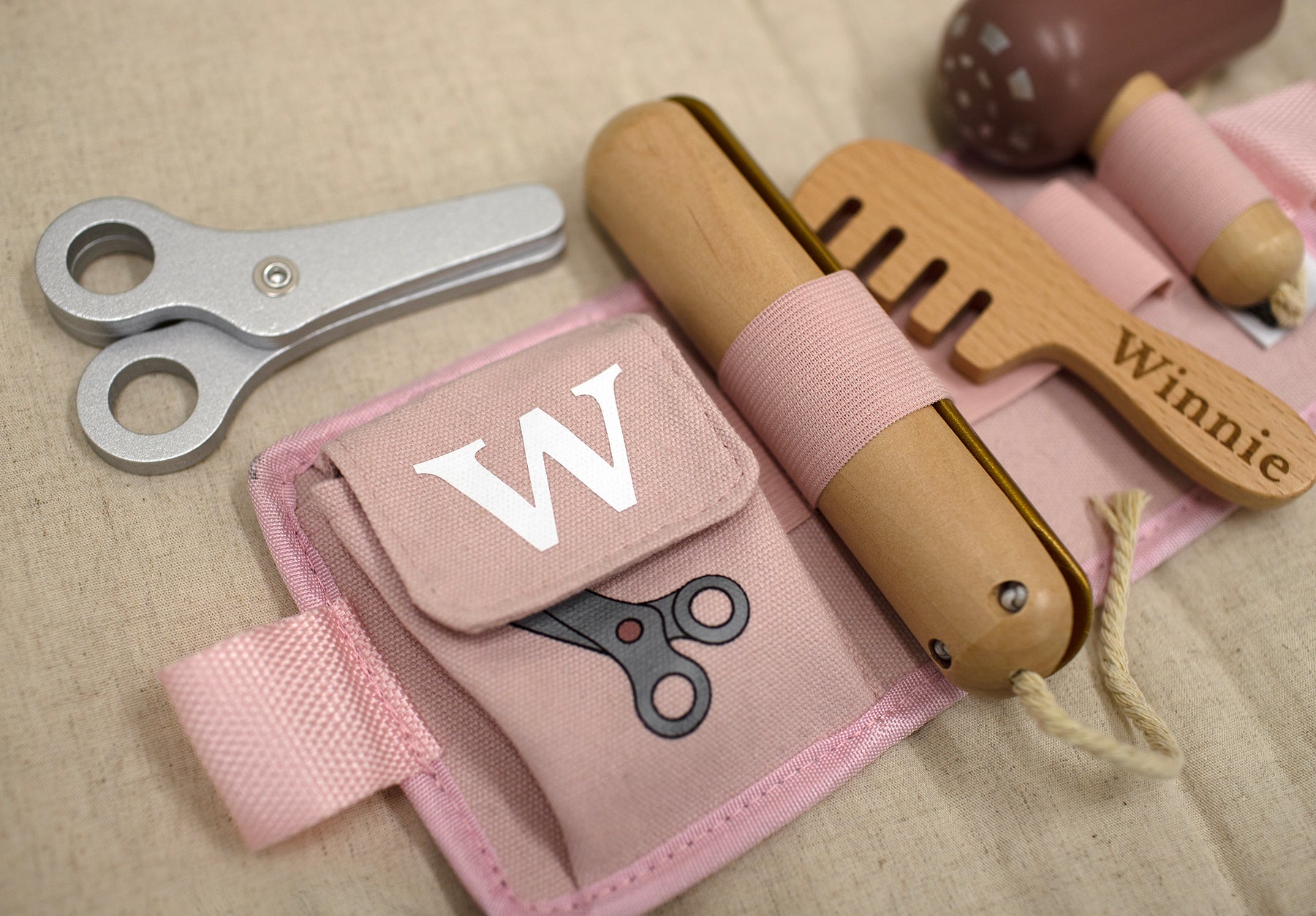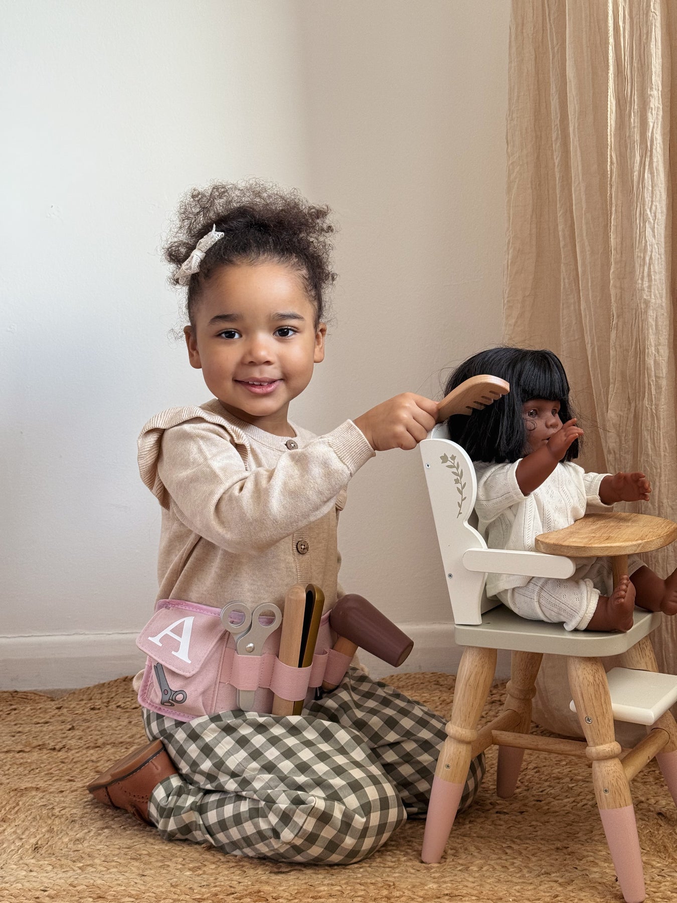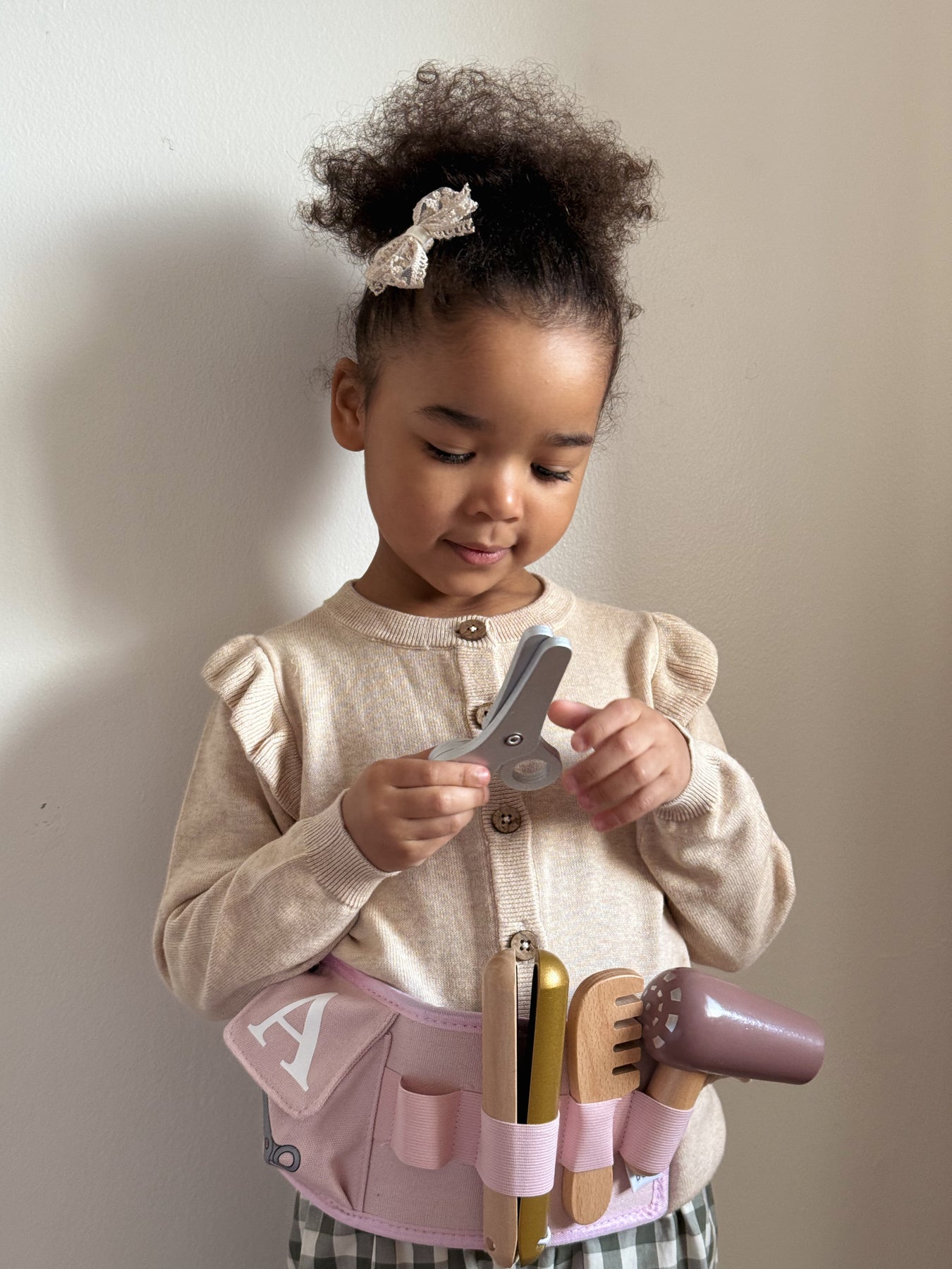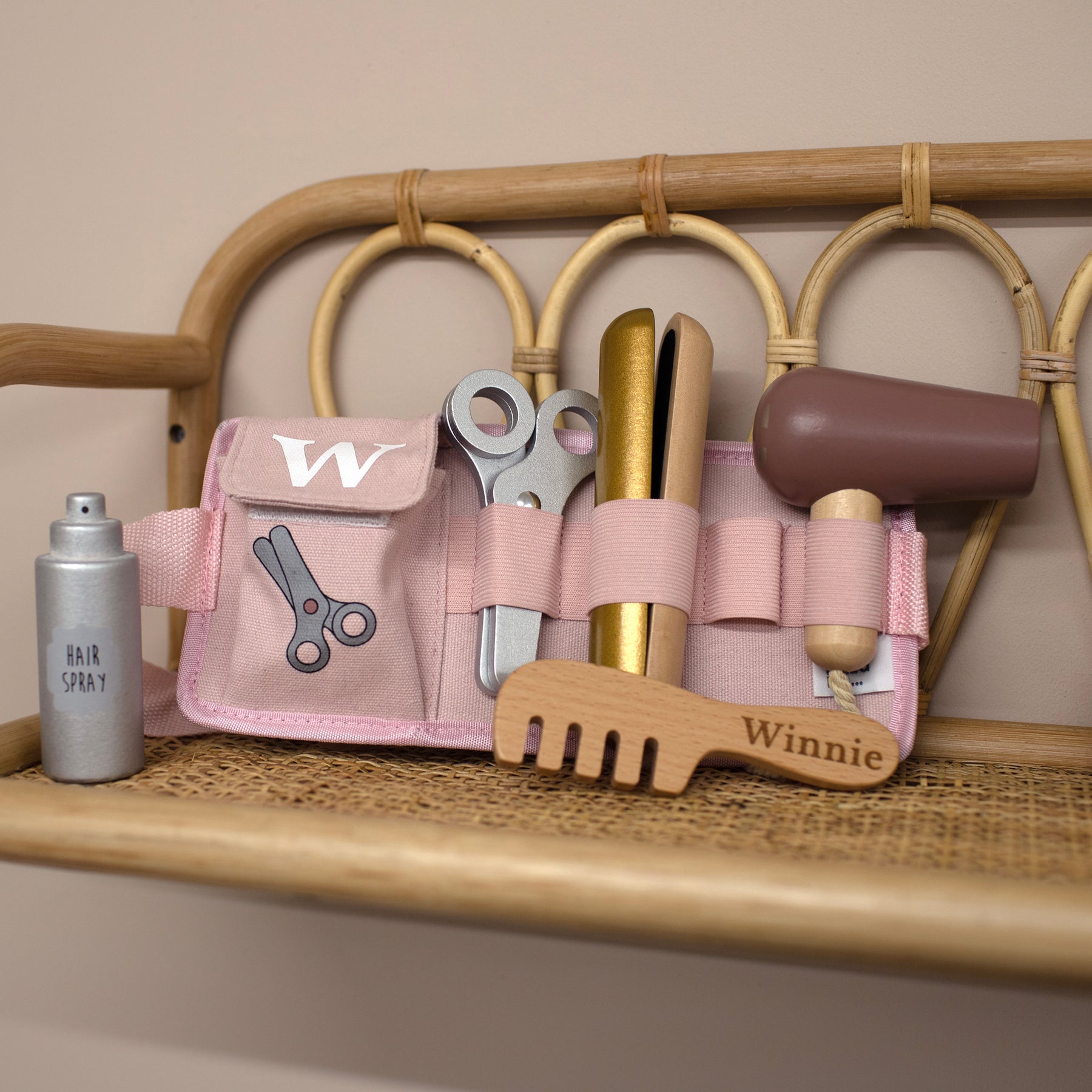 Unleash your child's inner hairdresser with the Jabadabado hair dresser belt! Packed with all the essentials - a hair dryer, comb and scissors - this practical belt is perfect for any makeover. Plus, with a real belt that fits nicely around their waist, your little one will feel like a true stylist. Personalised with an engraved name on the comb and their initial on the belt for a one-of-a-kind keepsake!