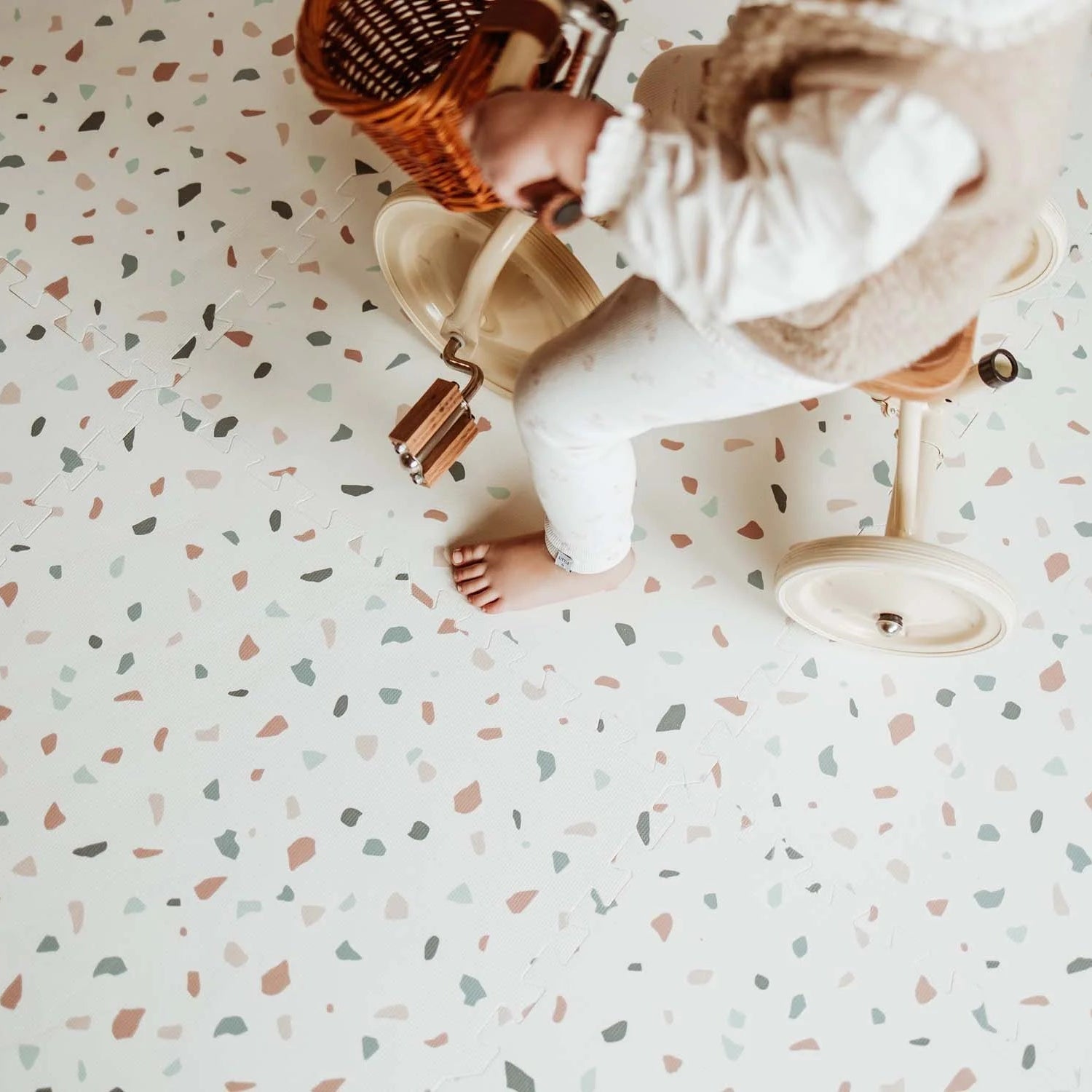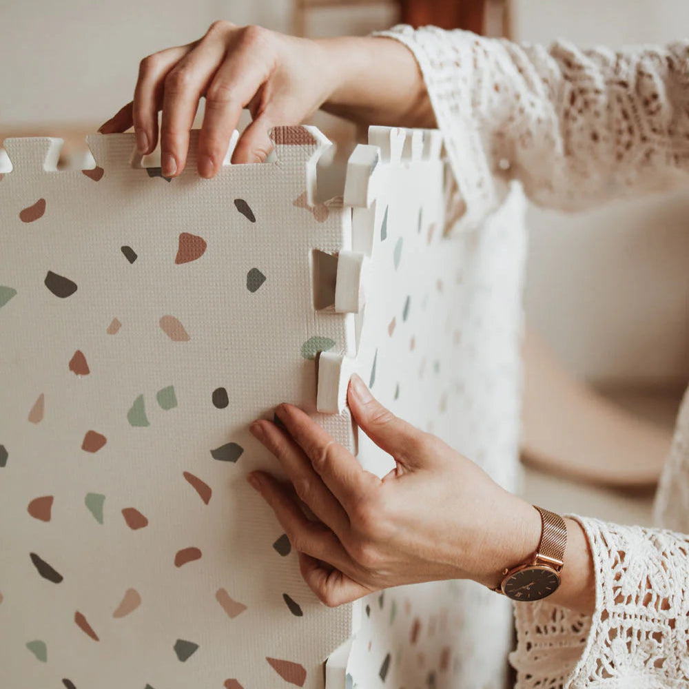 • Playmat – Double-sided play surface: play on one side, flip it over for a more serene look in your home.