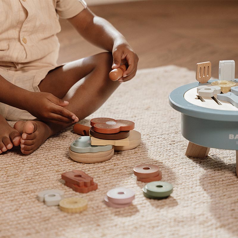 This wooden toy barbecue set includes 34 wooden pieces and comes with tools, a hamburger bun, and for added realism, a removable grill that allows your little one to easily simulate the grilling process. Underneath the grill, a clever storage compartment where you can easily store the various wooden ingredients after playing. This hidden stash includes ketchup, mustard, onions, aubergine, corn, sausages, mushrooms, bacon, fish, and charcoal. Watch as your little one explores the art of grilling, creates delicious wooden meals, and develops creativity through role play with this wooden barbecue toy set.