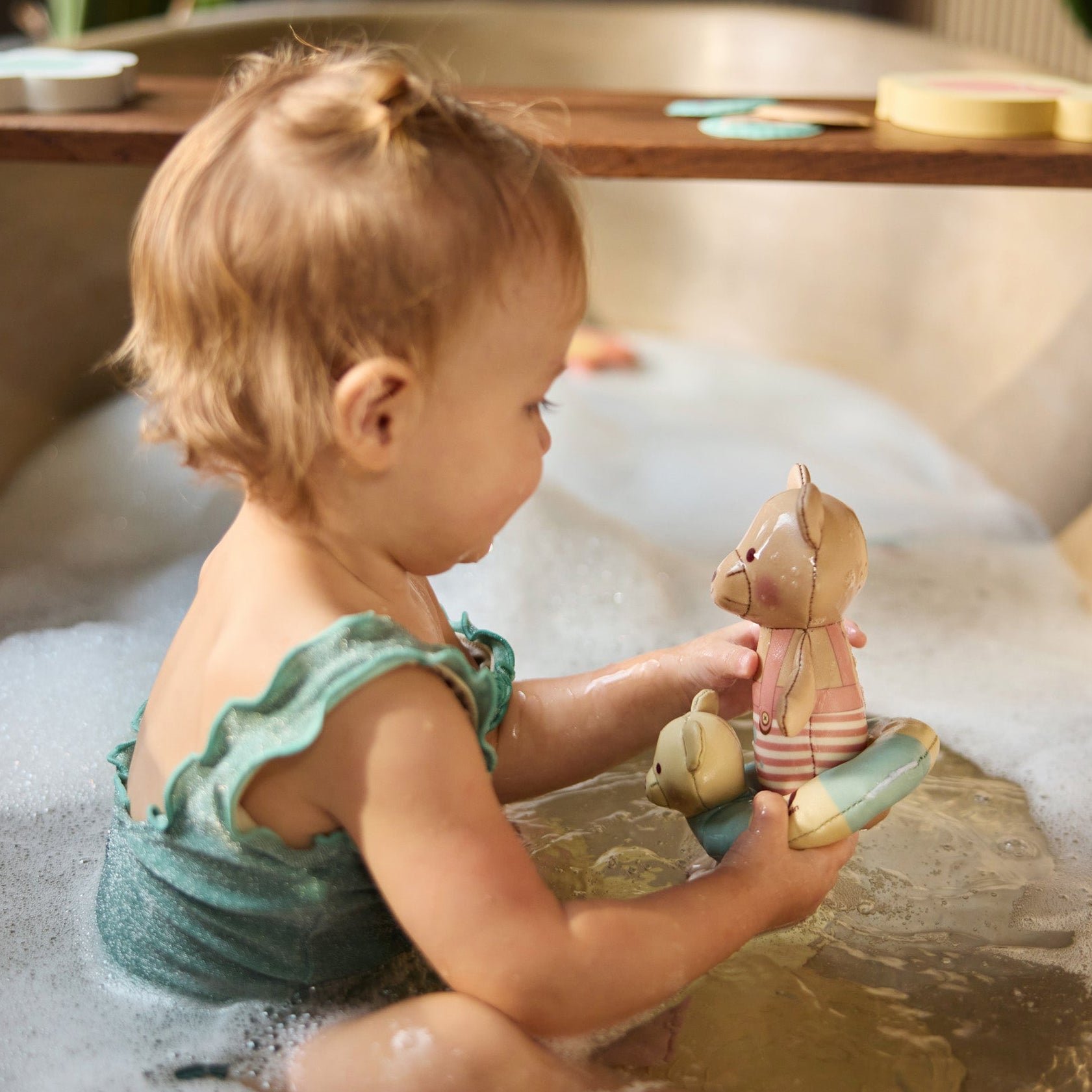 This floating doll gives your little one a familiar play companion during bath time. The removable ring adds variety: play with the doll or just the ring in the water. The material is waterproof and easy to clean.
