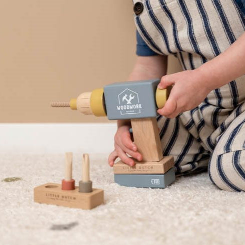 Drill, screw and unscrew! With this Little Dutch wooden toy drill your little ones can fix just about anything. What’s their first DIY project going to be? They can pick one of the three interchangeable tips, fix it on the head of the drill and get started.