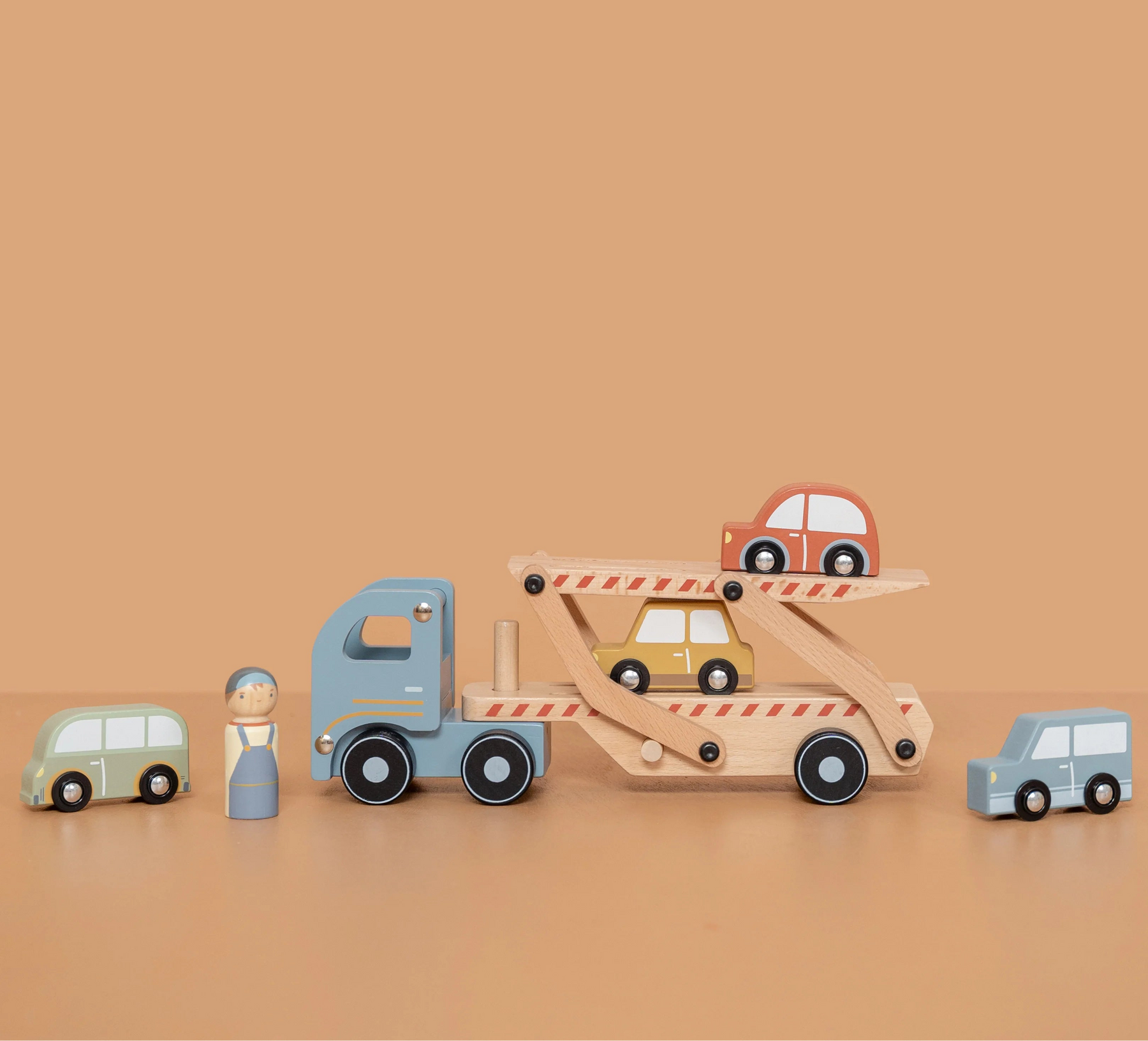 Your little one will love to add this adorable Little Dutch truck to their collection. The set includes a truck, four vehicles and wooden character, providing your little one with hours of fun. This adorable wooden toy will help develop your little ones creativity, fine motor skills and imaginative play as they create their own scenarios. Additionally, the set also makes a lovely gift or nursery decor piece for any car lover!