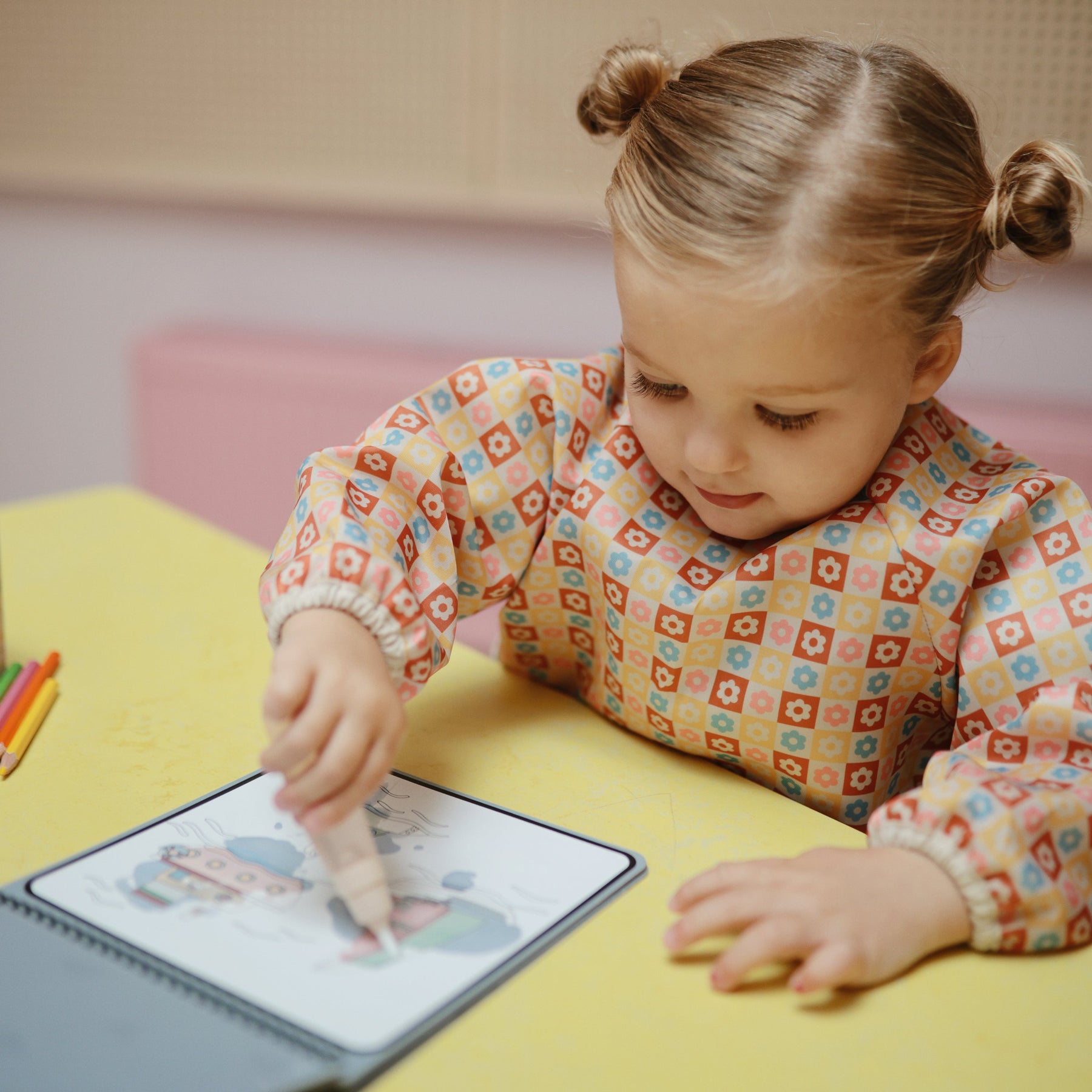 Buckle up for creative adventures with this Mushie water colour pad featuring four pages of planes, trains, and automobiles waiting to be discovered.