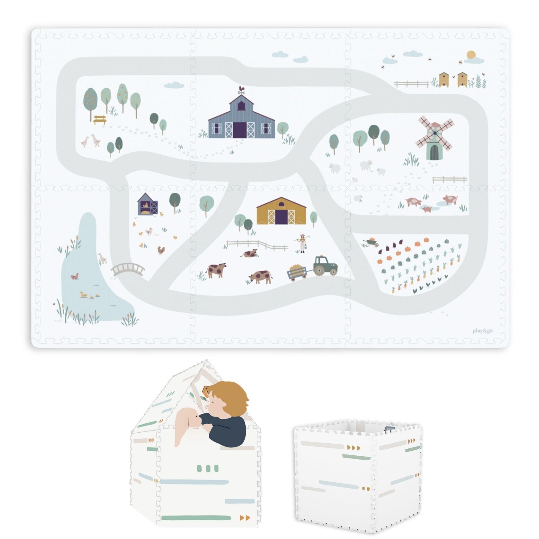 Bring the countryside to playtime with the play&go 3-in-1 puzzle mat – farm! Made from soft, durable 1.4 cm EVA foam, this foam play mat easily transforms into a storage box or playhouse.