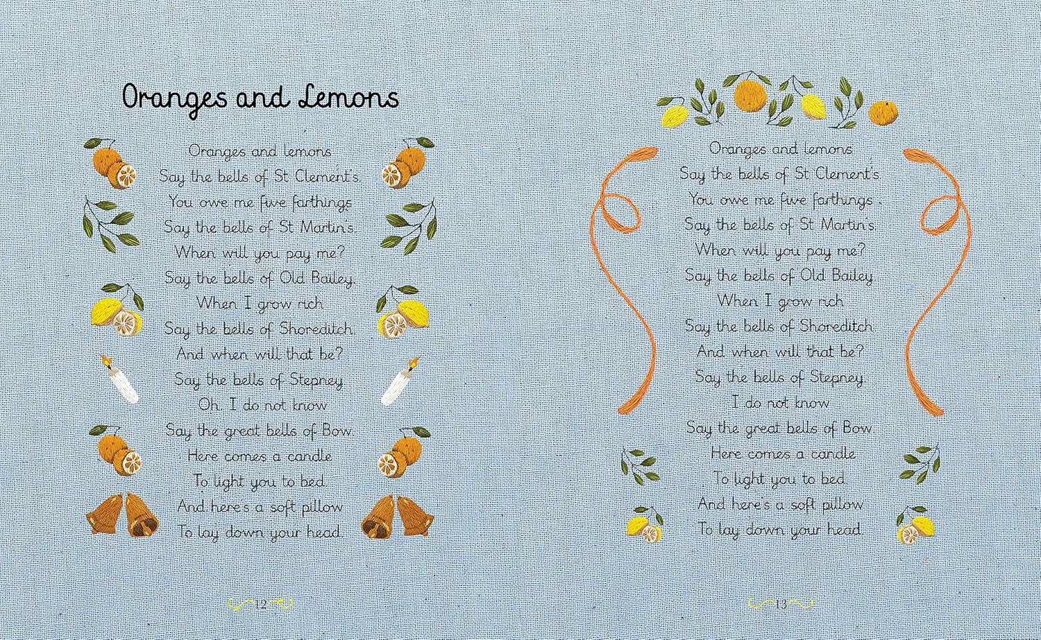 This treasury gives parents the opportunity to rediscover just how useful (and calming) 30 of the best-loved lullabies and nursery rhymes are in one, beautiful volume. Stunningly embroidered illustrations for each rhyme offer little ones a visual delight and will make this book a keepsake to treasure.