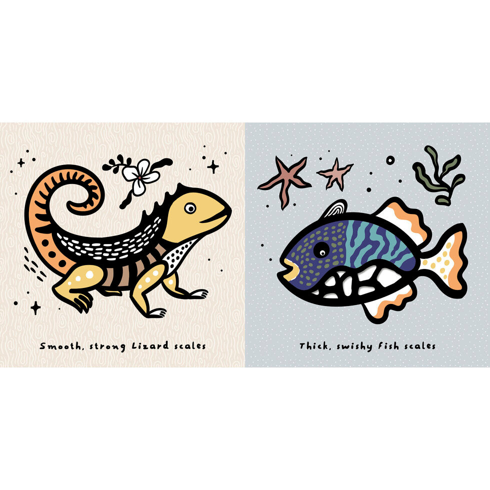 Meet seven cute animals with super special scales, from a swishy fish to a slinky snake. Little ones will love feeling the textured pages, designed to help develop sensory and motor skills.