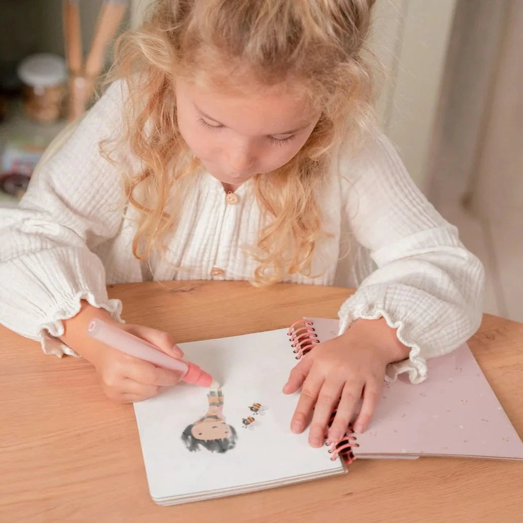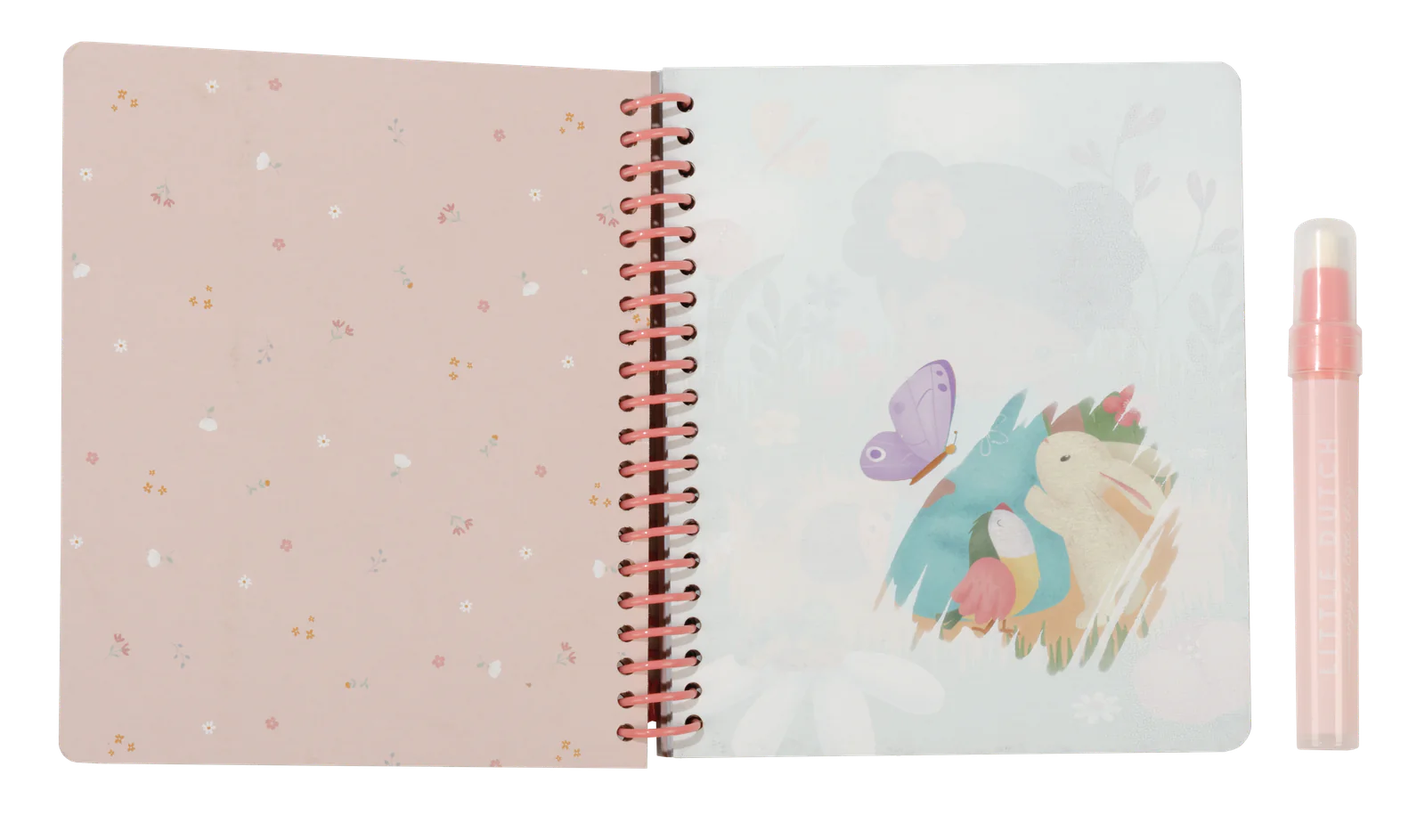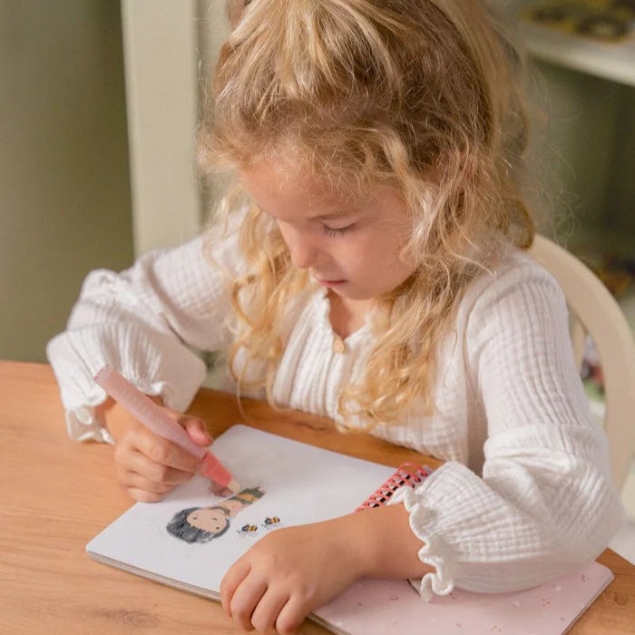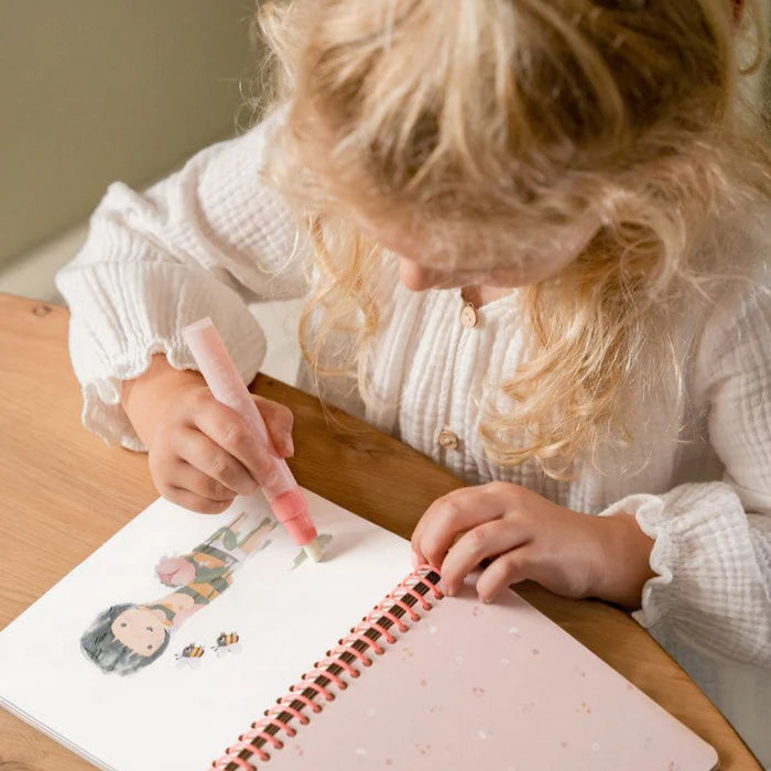 These magical colouring sheets in the 'Rosa & Friends' water colouring book by Little Dutch are a special colouring activity for budding artists. The magic marker allows children to colour with water by going over the drawings with it. The colours conjure up!