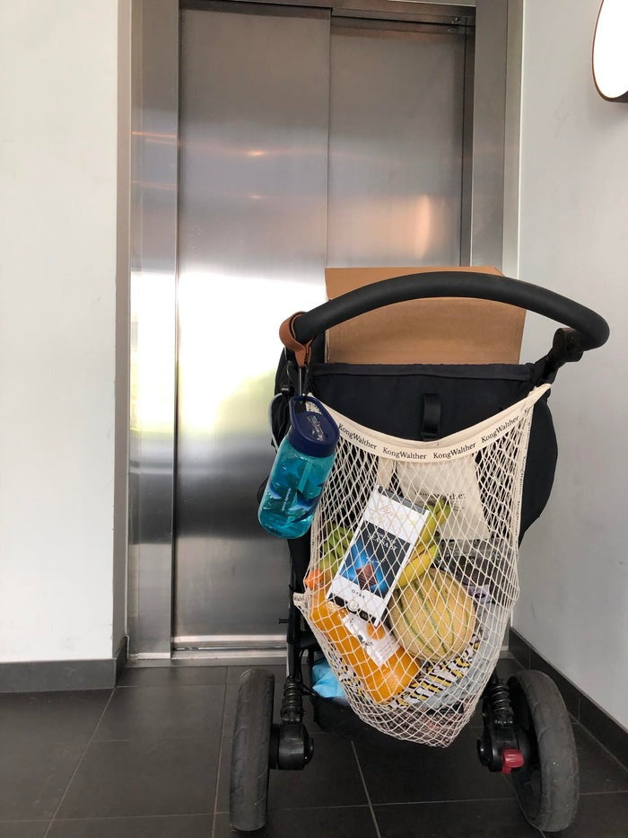 The Magic Shopper net from Kong.Walther is a large and practical shopping net that is mounted directly onto the stroller with strong Velcro straps.