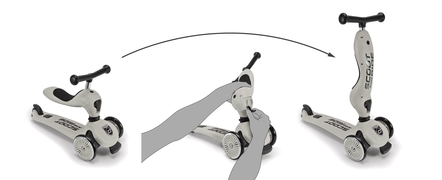 Scoot & Ride's Highwaykick 1 is the perfect companion for children aged 1 to 5 years. Thanks to its stability, two front wheels and one rear wheel, the product allows even the youngest children to move, sitting safely and comfortably. This Scoot & Ride scooter is the first 2-in-1 kickboard scooter with a seat that can be easily adjusted without the use of any tools. Additionally the Highwaykick 1 has a safety pad as rollover protection, for additional safety.