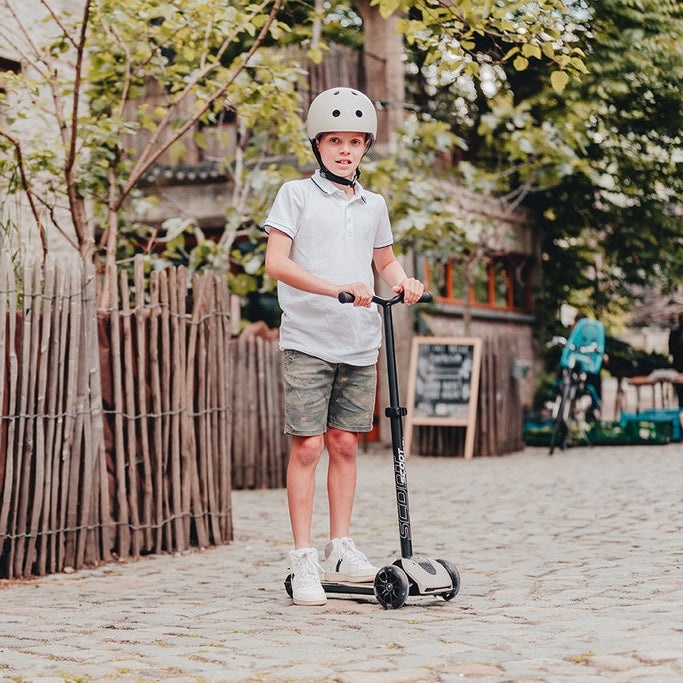 The Highwaykick 5 LED from Scoot and Ride is the ideal companion for children from 5 years and grows with them thanks to the height-adjustable handlebar (up to 90 cm). With a load capacity of 80 kg and an enlarged tread surface, this scooter offers long-lasting riding fun for older children and teenagers.