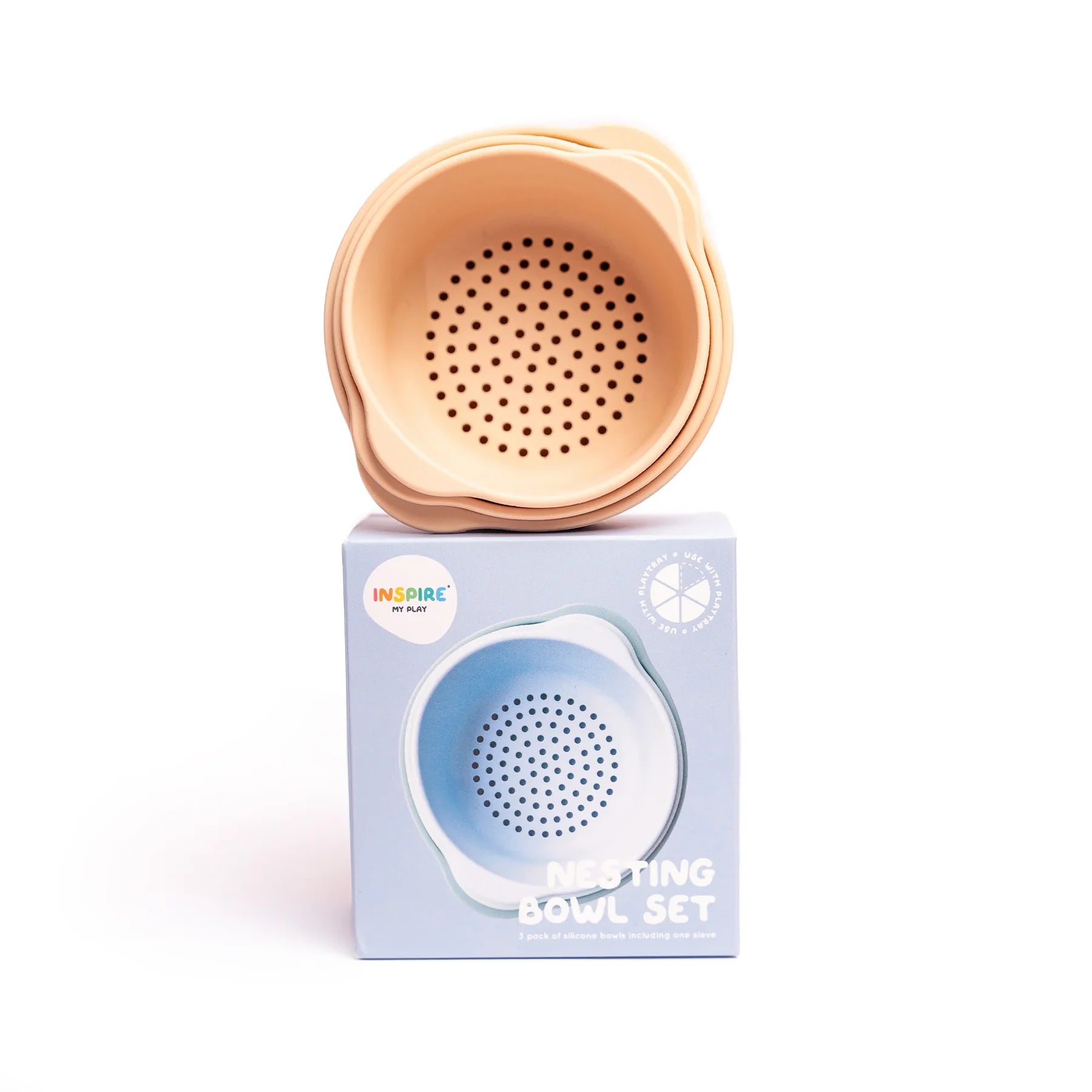 - Contains: 3 x silicone nesting bowls (including one sieve)