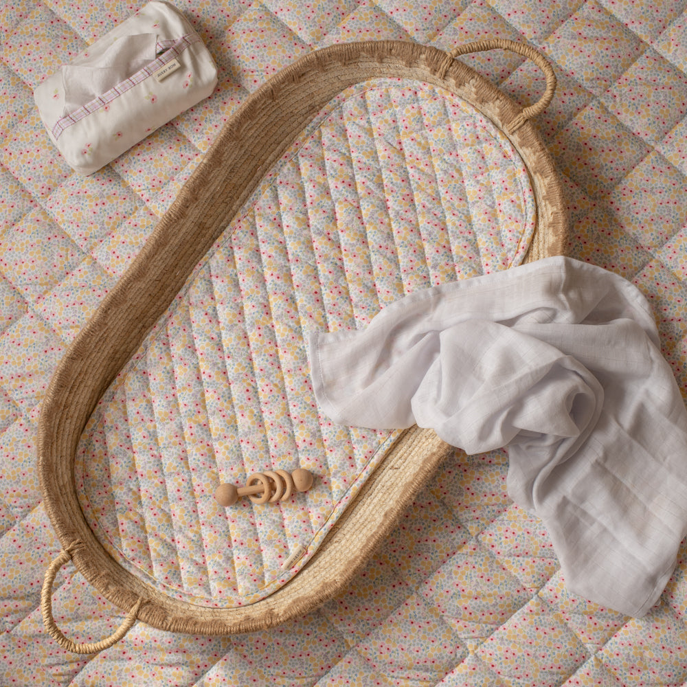 Avery Row's organic cotton basket liners are super soft and extremely versatile. This liner will fit perfectly into a seagrass changing basket, and features a light water repellent coating so it can double up as a changing pad you can fold up and use on the go.