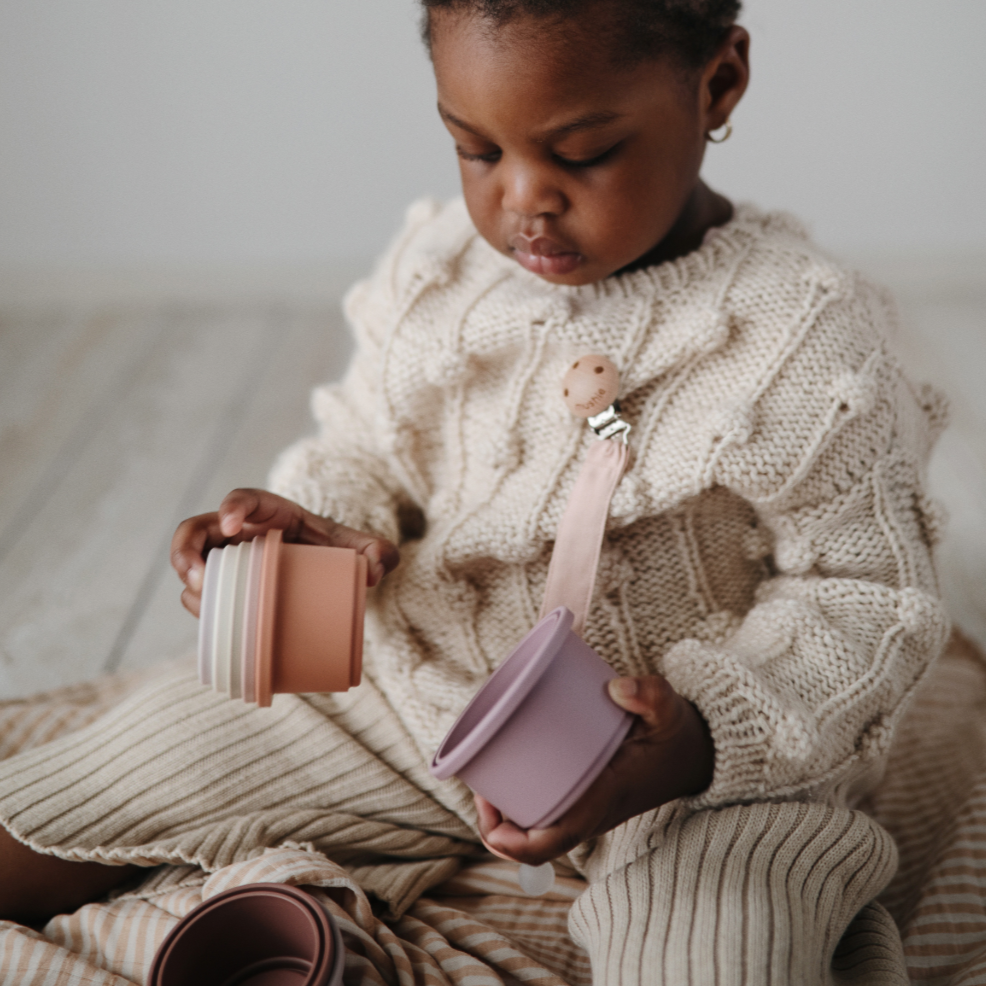 Mushie stacking cups are a fun and engaging toy to promote your baby's learning. In a variety of beautiful colours for them to look at, while encouraging them to stack the pieces to help develop their organisation and motor skills. Designed to develop both the body and brain, these Mushie cups will make sure playtime is fun and creative for hours.