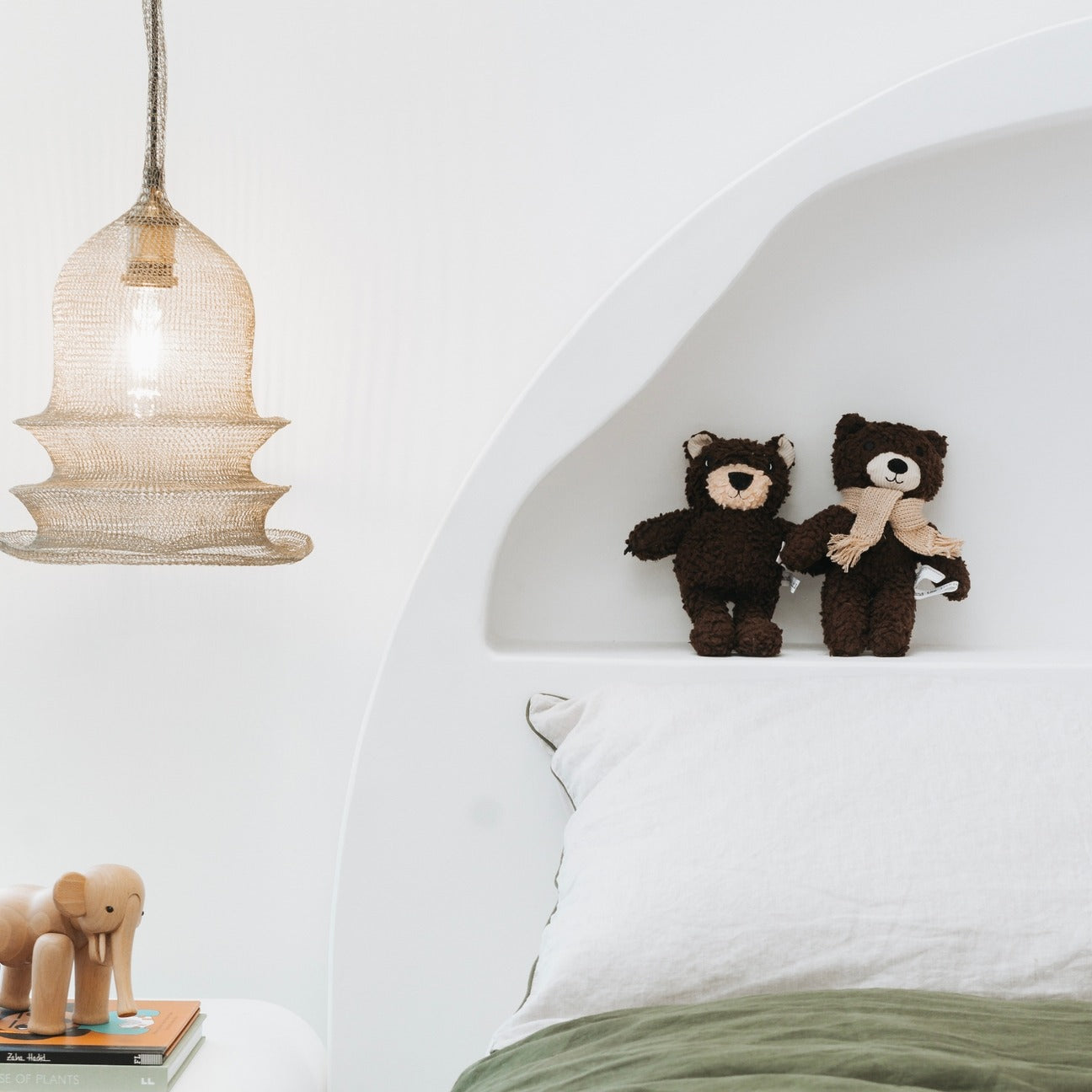 Made with our unique cotton plush fabric, Murphy bear wears a knitted tan scarf made with Australian merino wool.