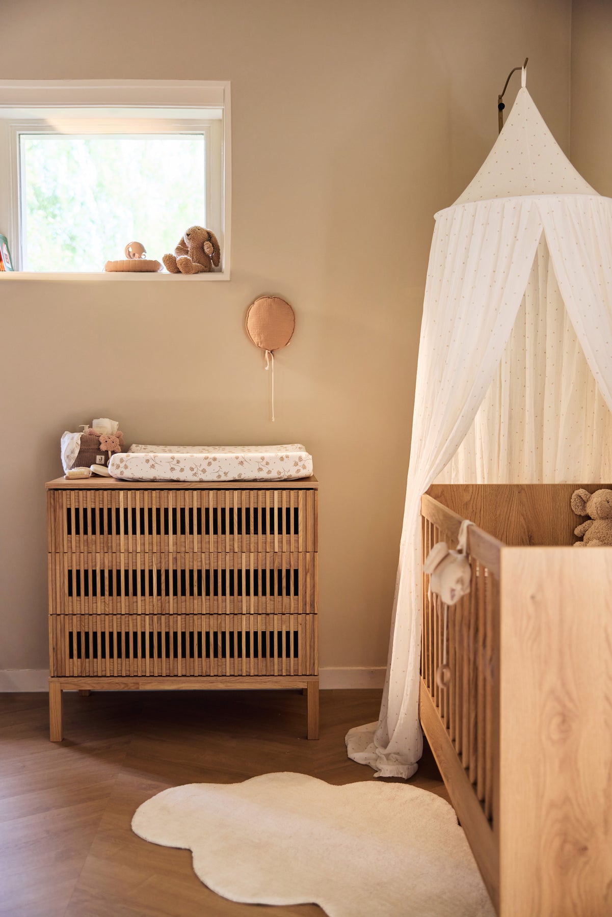 Add a touch of nature’s calm to your nursery with this soft, stretchy jersey changing mat cover. Adorned with a delicate leafy print, it stays snugly in place thanks to its elastic edges, keeping your little one cozy and secure during diaper changes. Pair it with our Ruffle sheet for an extra sweet setup!