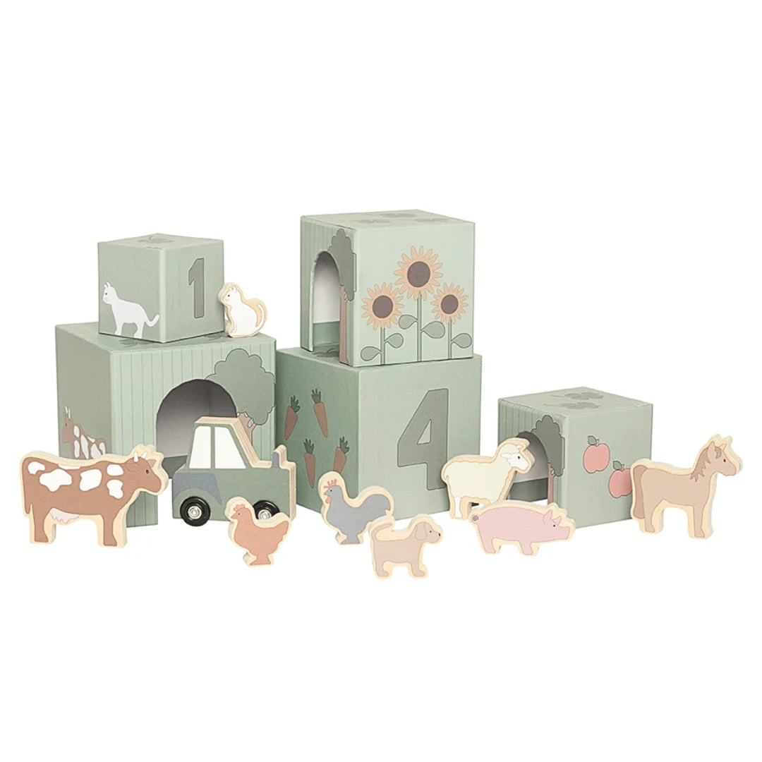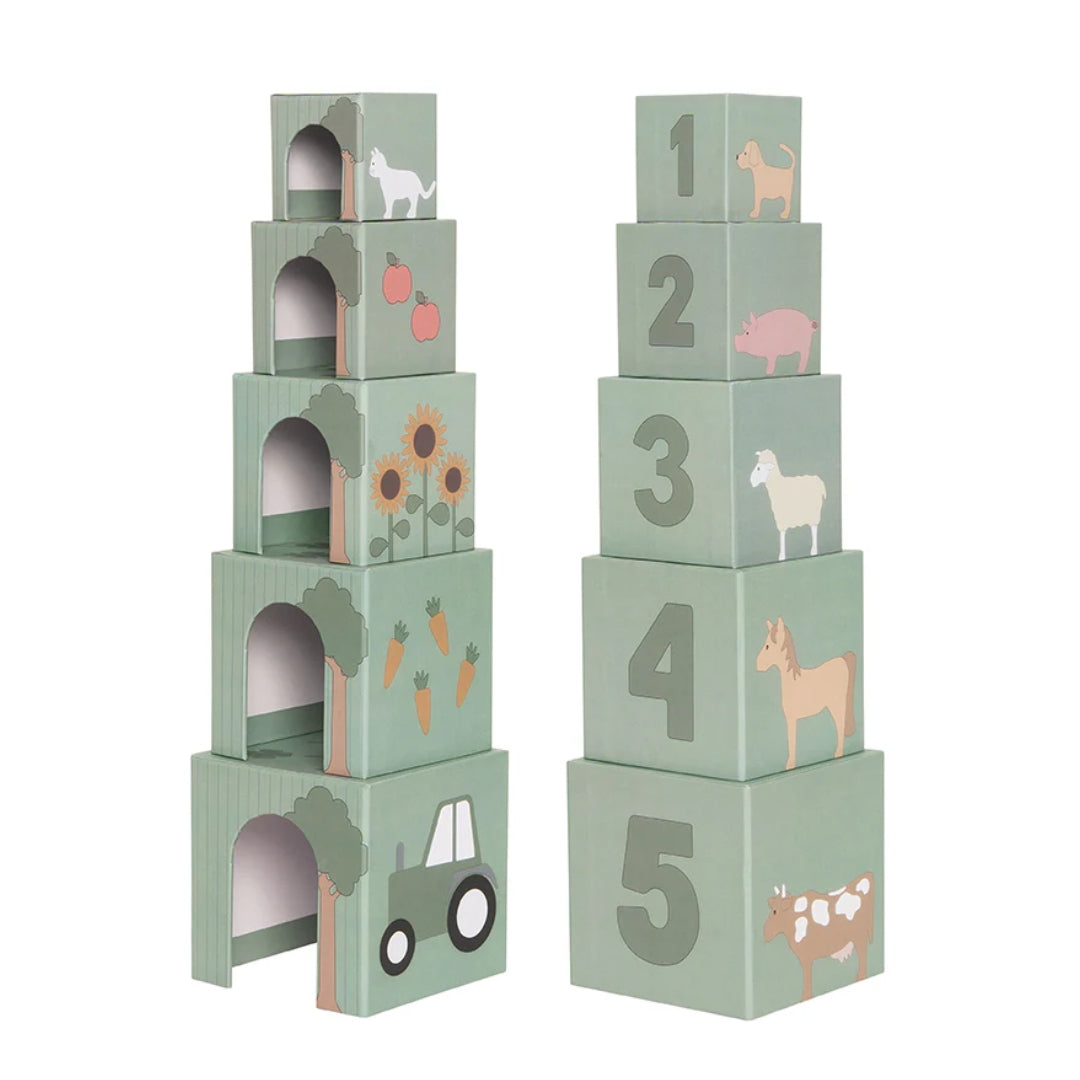Jabadabado's stacking animals is a simple, fun and educational way to learn to count and learn the names of the different animals. The set includes 5 colourful stackable hardboard cubes numbered with the numbers 1-5.