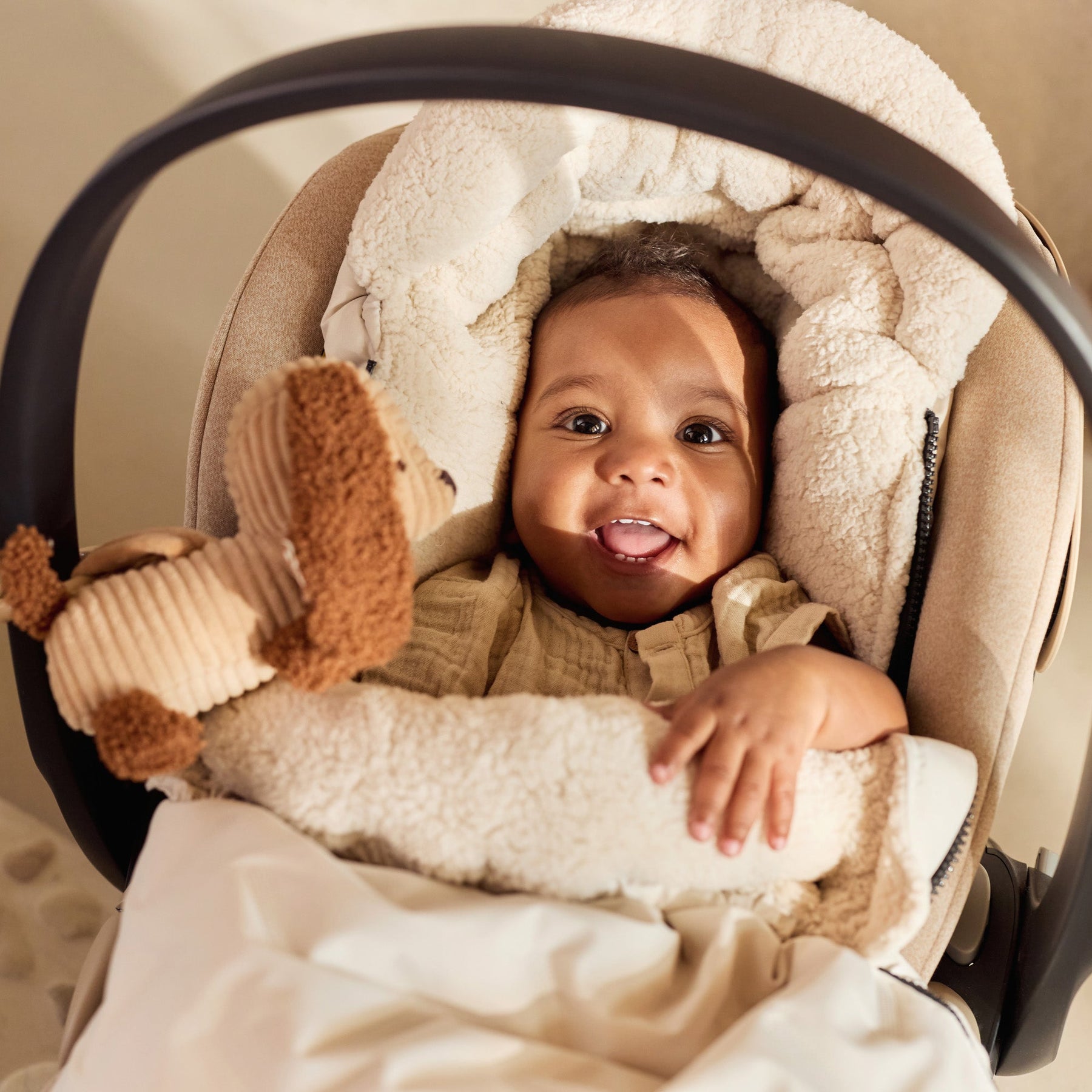 Keep your little adventurer snug in this footmuff, ideal for strollers and buggies. Its bionic finish keeps the weather at bay, while the soft teddy fleece lining wraps your child in cozy warmth during chilly days. Compatible with 3- and 5-point harnesses, it’s the perfect winter companion for every outing!