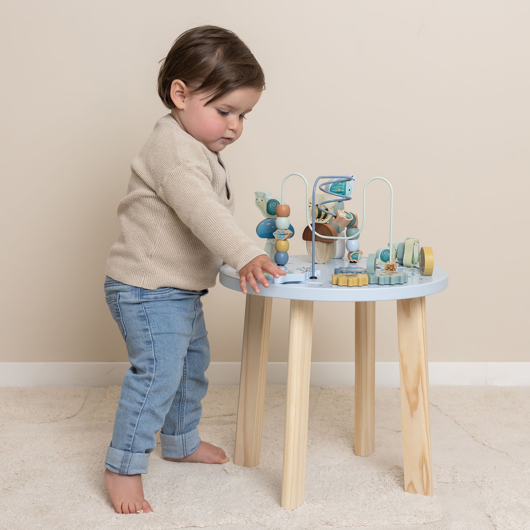 This Little Dutch wooden multi-activity table challenges your little one in many ways. There are 5 activities to explore that each support the development of fine motor skills. Thanks to the safe and balanced design, the activity table also encourages standing up. And staying up! Because the many features will keep your toddler engaged for a while. Assembly by an adult required.