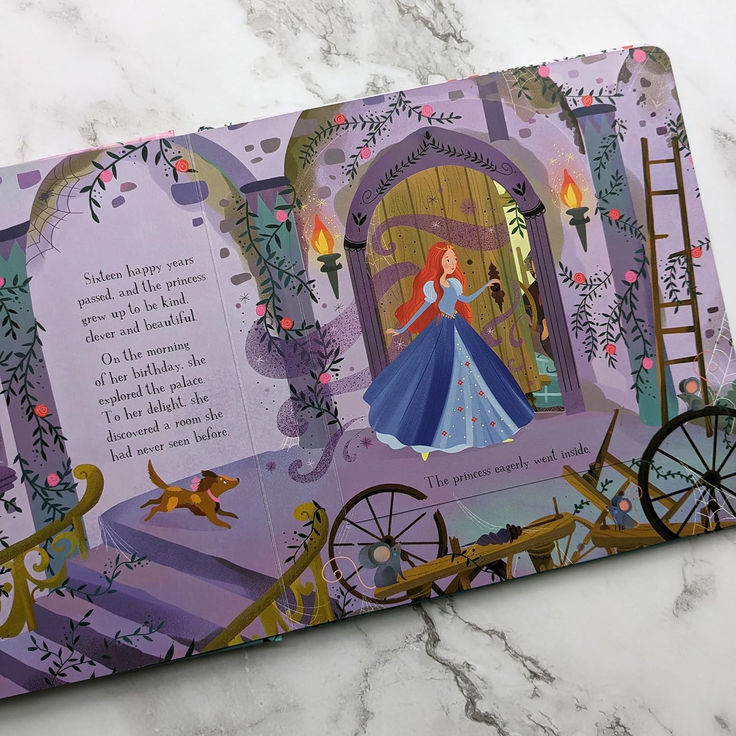 Awaken the magic of Sleeping Beauty's story with this gorgeously illustrated life the flap die-cut board book, and experience this tale like never before! Our die-cut, lift-the-flap format adds an extra layer of excitement. Watch as your child uncovers hidden surprises on every page. Immerse your child in the magic of storytelling with our unique and captivating fairy tale book. Captivating visuals bring this enchanting story to life, igniting your child's creativity and encouraging a love for reading.