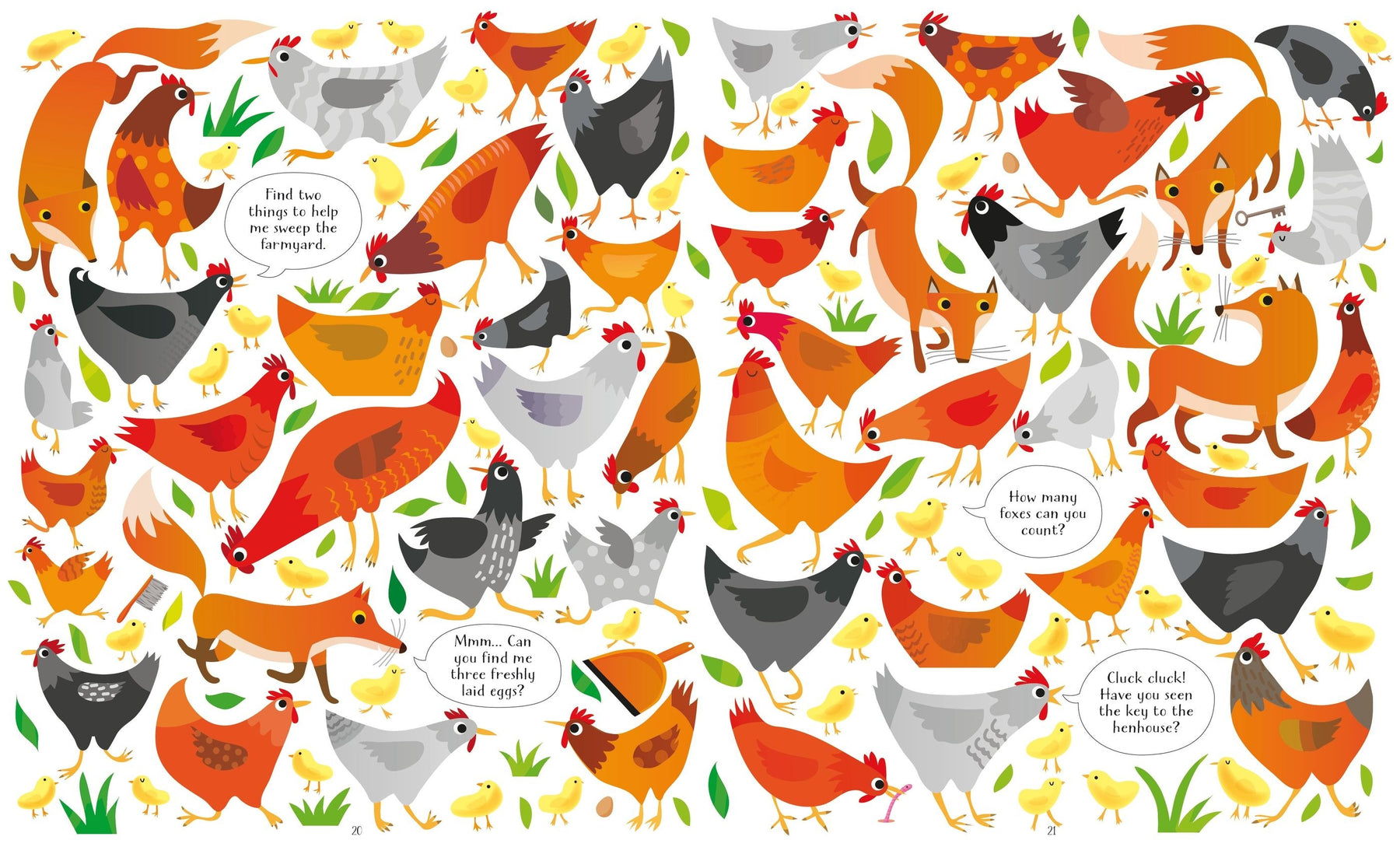 A vibrantly illustrated 300-piece jigsaw showing a busy farmyard, plus a picture puzzle book, presented together in a colourful sturdy box. Both the jigsaw and puzzle book are packed with things to spot and talk about. Can you find a cow wearing a bell, five foxes, a plastic duck and lots more?