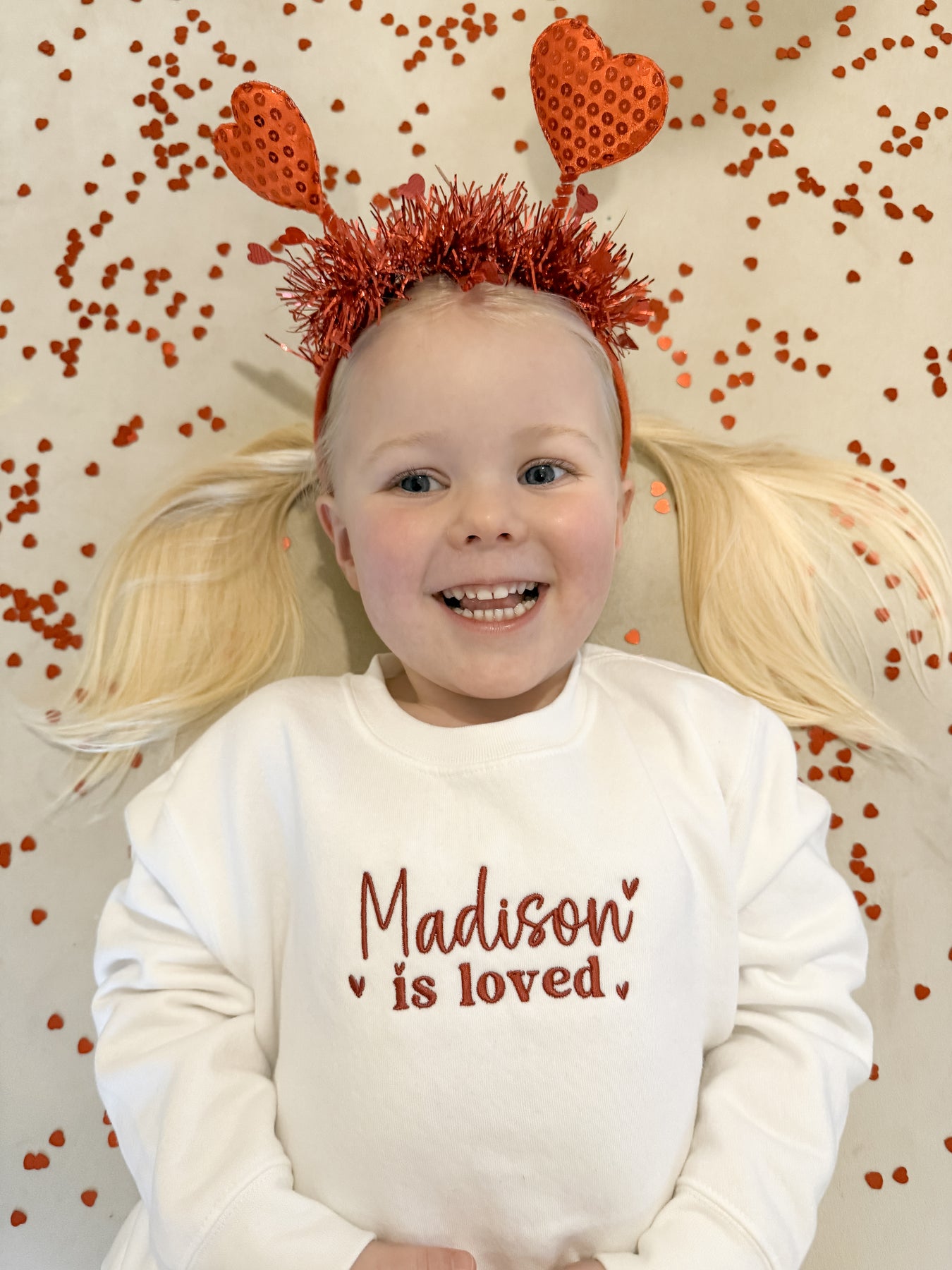 Wrap your little one in pure comfort with this charming Mabel & Fox personalised jumper. Crafted in soft white fabric with a splash of cheerful red embroidery, it's customised with your child's name and paired with "is loved" - a sweet reminder everyday.