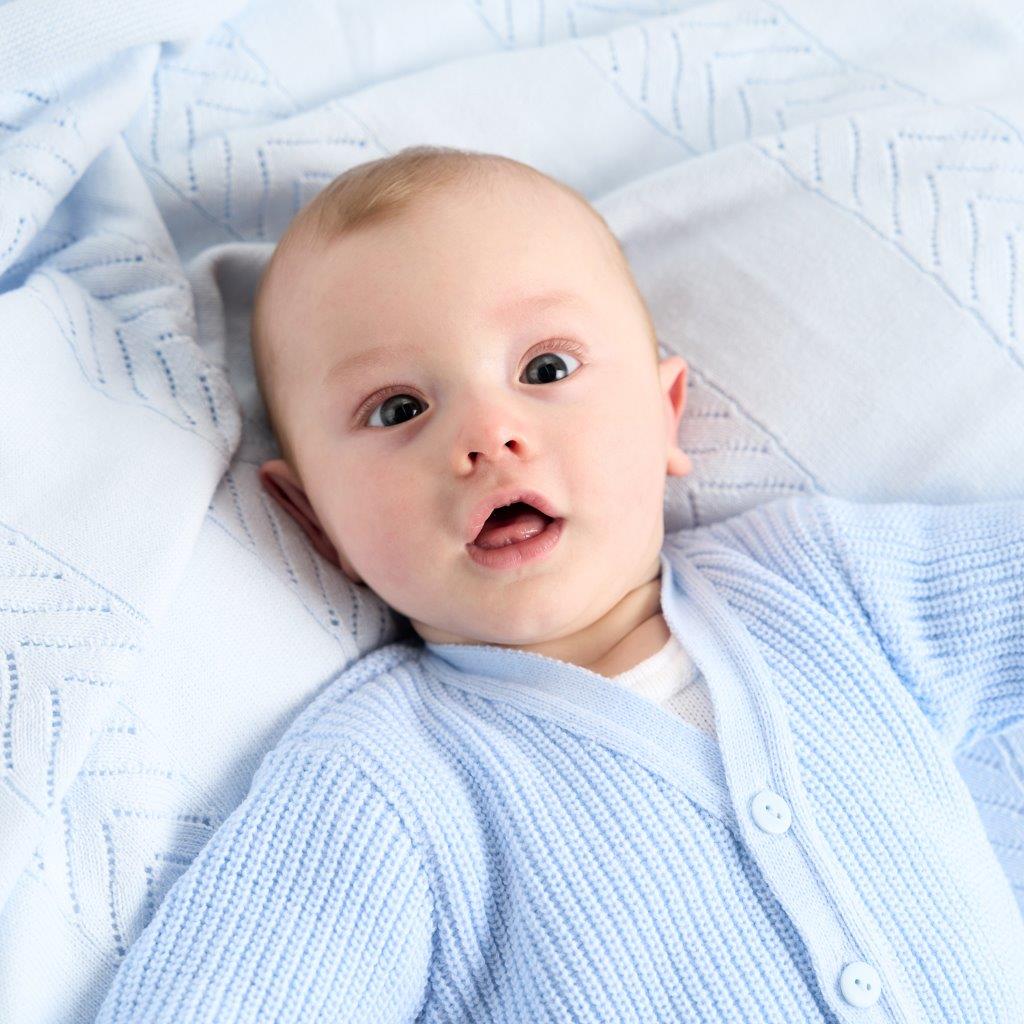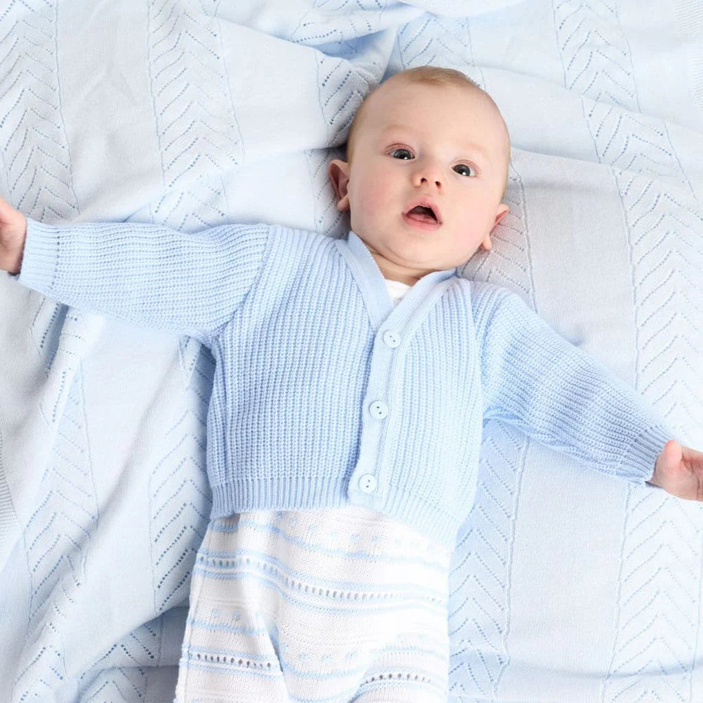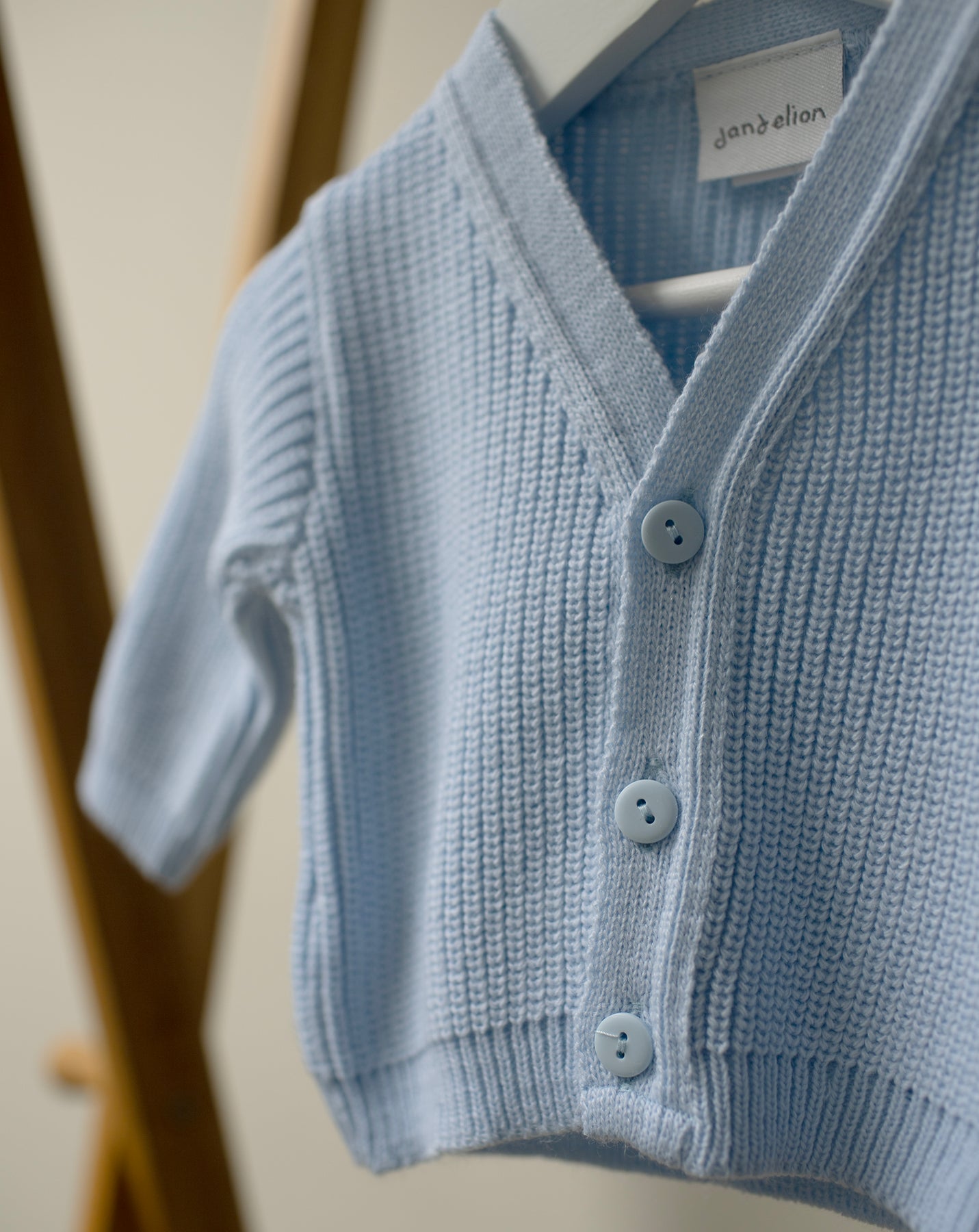 Featuring a blue knit and cute buttons, it’s a cosy, easy-to-wear layer for everyday adventures and a beautiful keepsake gift parents will treasure for years to come.