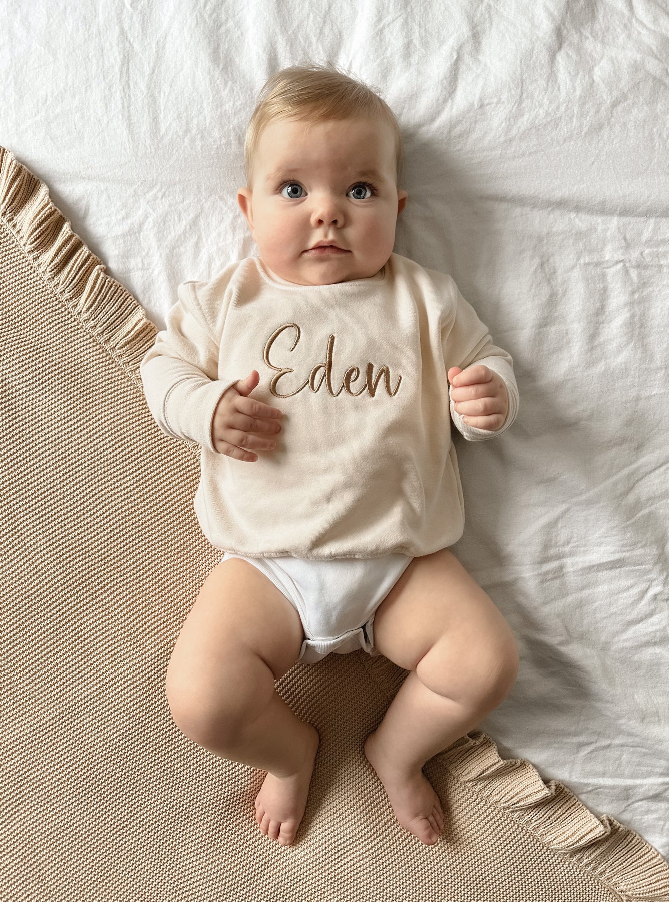 This super-soft Mabel & Fox oat jumper is the perfect blend of comfort and charm for little ones. Beautifully embroidered, it can be personalised with any name to create a truly bespoke gift. This cosy jumper makes a wonderful present for special occasions or everyday adventures.