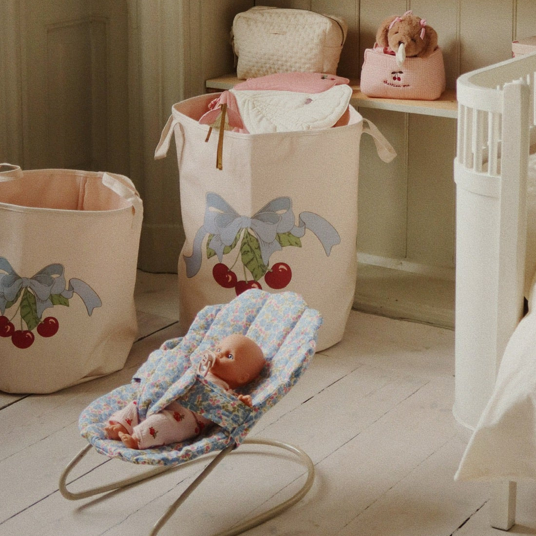 A pair of charming cotton storage baskets designed to corral toys, building blocks, and treasures with style. Lightweight and collapsible, they tuck away neatly when empty, making them perfect for keeping a child's room organised without taking up precious space. Ideal for any playroom or bedroom refresh.