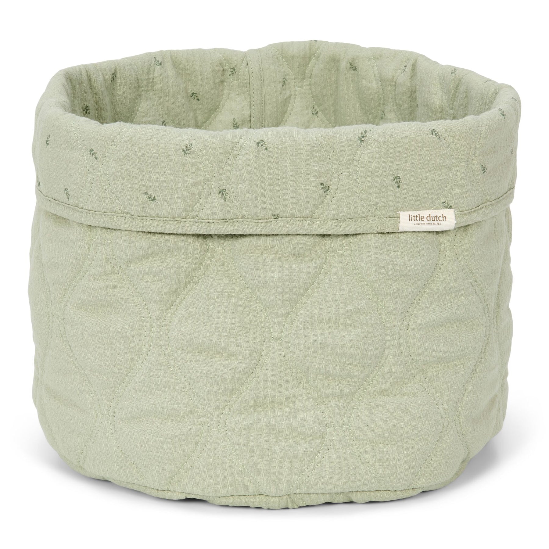 This handy Little Dutch changing basket will keep nappies, tubes and bottles neatly organised and always within easy reach! The basket is sturdy and beautifully finished, a real asset for the nursery. The soft Pure Sage green colour and subtle print add a soothing touch, and the basket is also reversible for variety. This must-have is available in different sizes, shapes and colours.