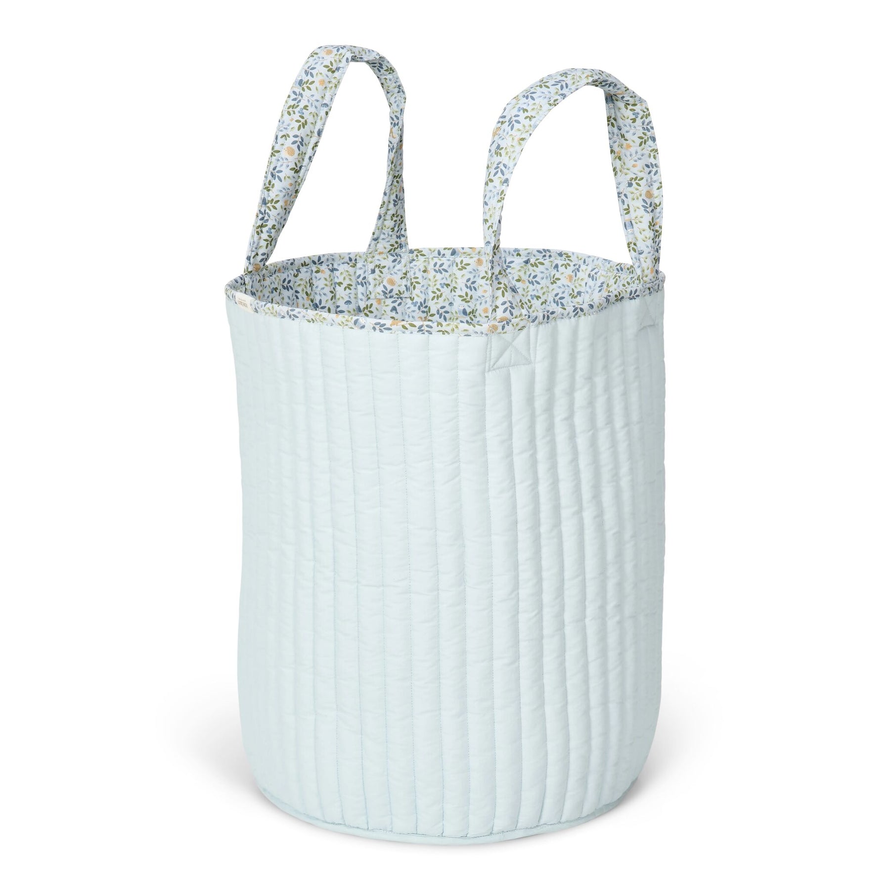 Crafted from soft, organic cotton with a quilted finish, it's as gentle to touch as it is easy on the eyes. The roomy interior swallows up toys, stuffed animals, and all those little treasures, while sturdy handles make it a breeze to carry from room to room. Practical, pretty, and oh-so-useful!