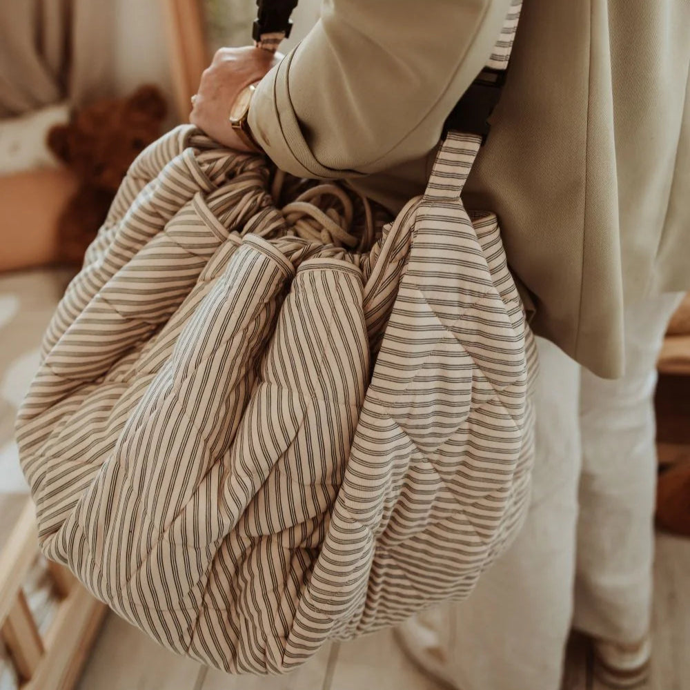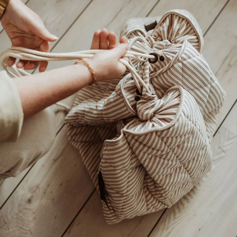A thoughtful blend of function, softness, and simple elegance, the noomad soft Blue Stripes playmat is perfect for families who travel light but never compromise on quality or beauty.