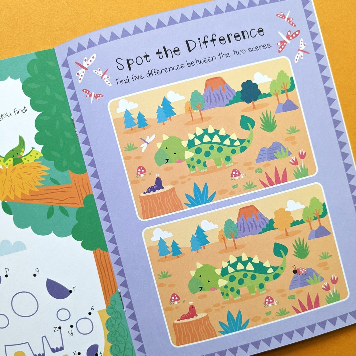 Embark on a dino-mite adventure with this fantastic dinosaur board game set! Includes: Reversible puzzle game board, 16-page activity book full of prehistoric fun, 6 quirky dinosaur game pieces, and 1 die.
