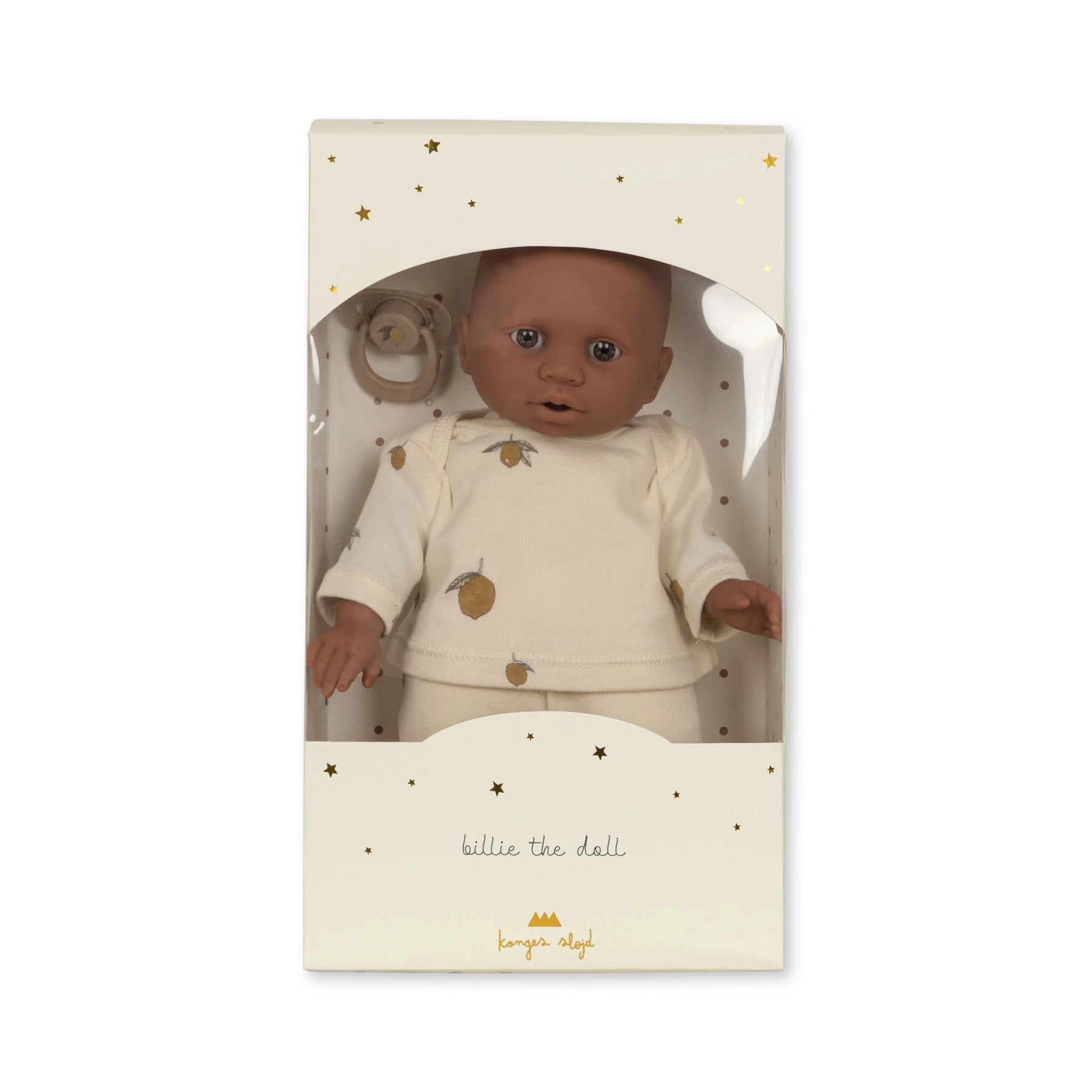Your little one will love to snuggle up to Konges Slojd's Billie the Doll and enjoy hours of fun play! This adorably dressed doll features a sunny lemon print for a unique look that kids will love. Plus, it comes complete with its own pacifier, making it a perfect companion for imaginary adventures.