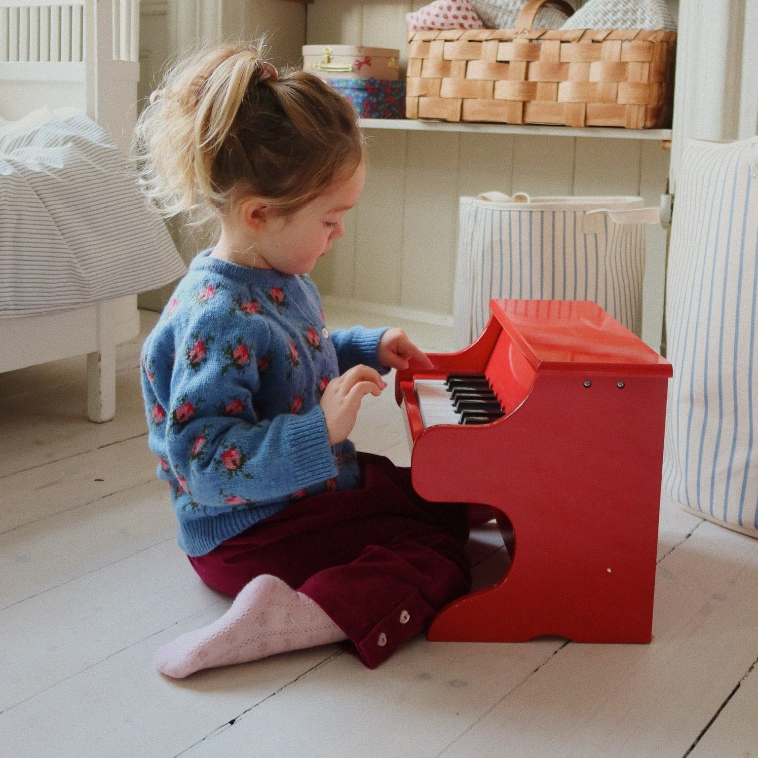 Bring music and fun to playtime with the Konges Slojd Glossy Red Piano. This charming miniature piano features 18 shiny keys that invite little fingers to explore melodies and rhythms. Crafted with a high gloss finish, it adds a splash of vibrant cherry color to any playroom. Plus, it comes with a small wooden holder perfect for displaying notes or tiny sheet music, encouraging creativity and imagination. Perfect for budding musicians, this delightful piano combines classic charm with playful design to inspire joyful moments and endless musical adventures.